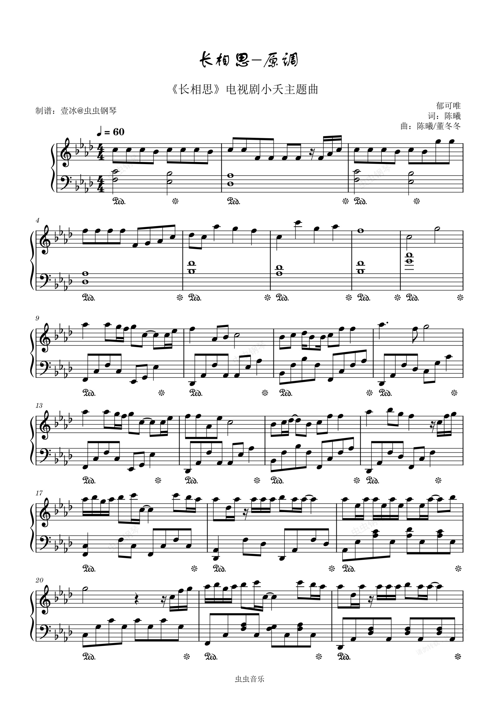 钢琴谱:长相思 (《长相思》电视剧小夭主题曲) - 原调