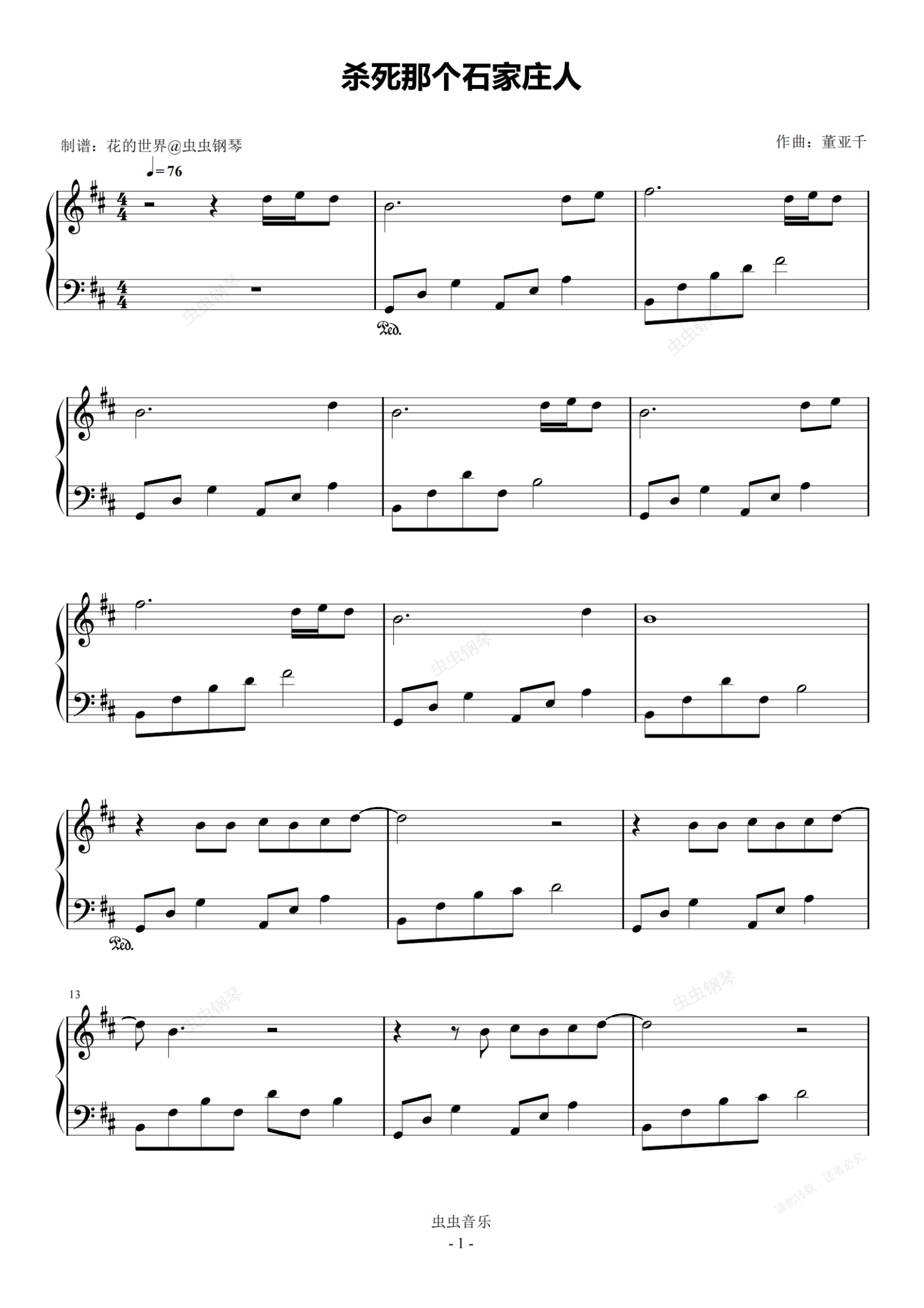 钢琴谱:杀死那个石家庄人 原调简易版 万能青年旅店