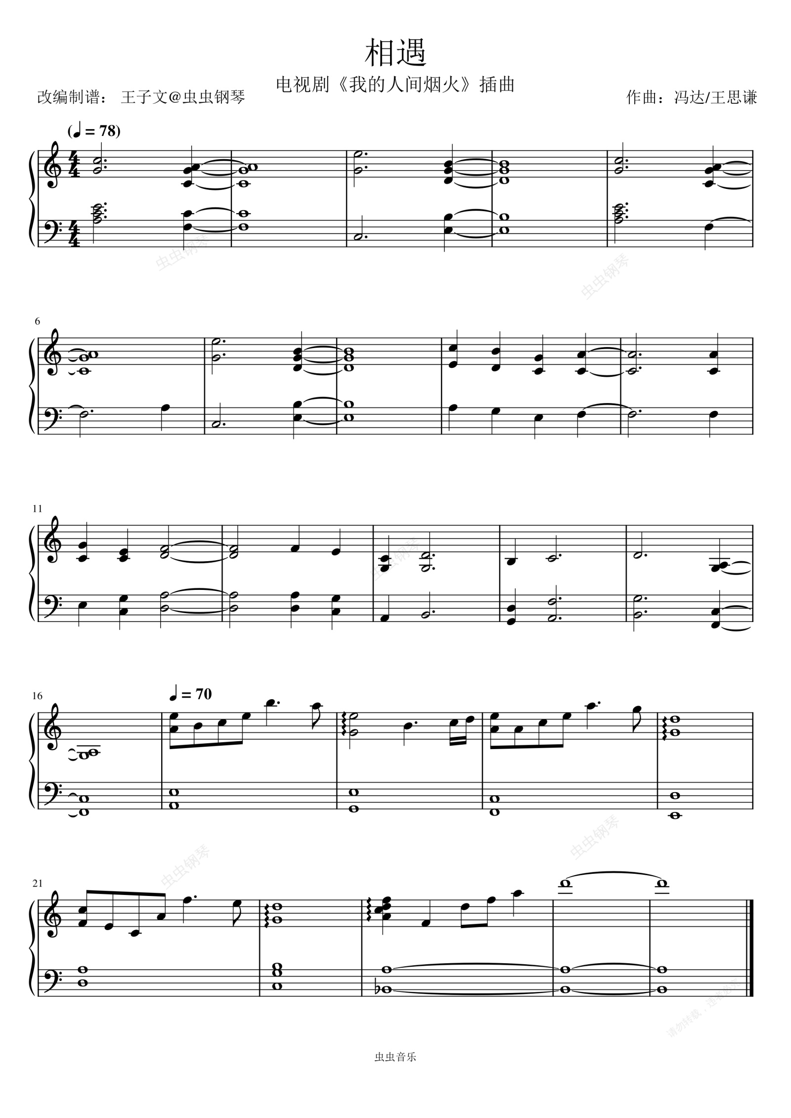 钢琴谱:《相遇》-《我的人间烟火》插曲