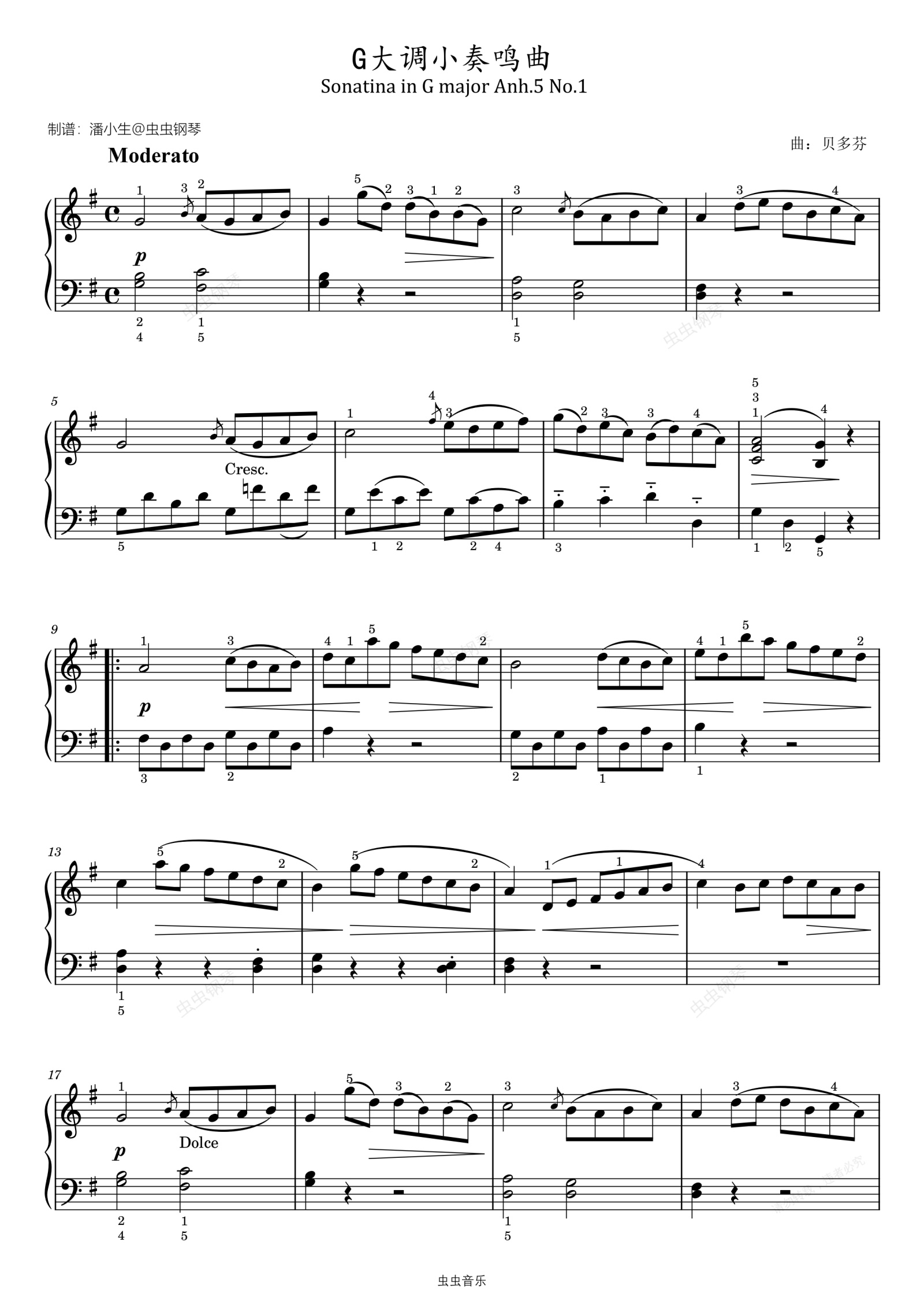 钢琴谱:贝多芬 G大调小奏鸣曲 原版带指法 Sonatina in G major  Anh.5 No.1