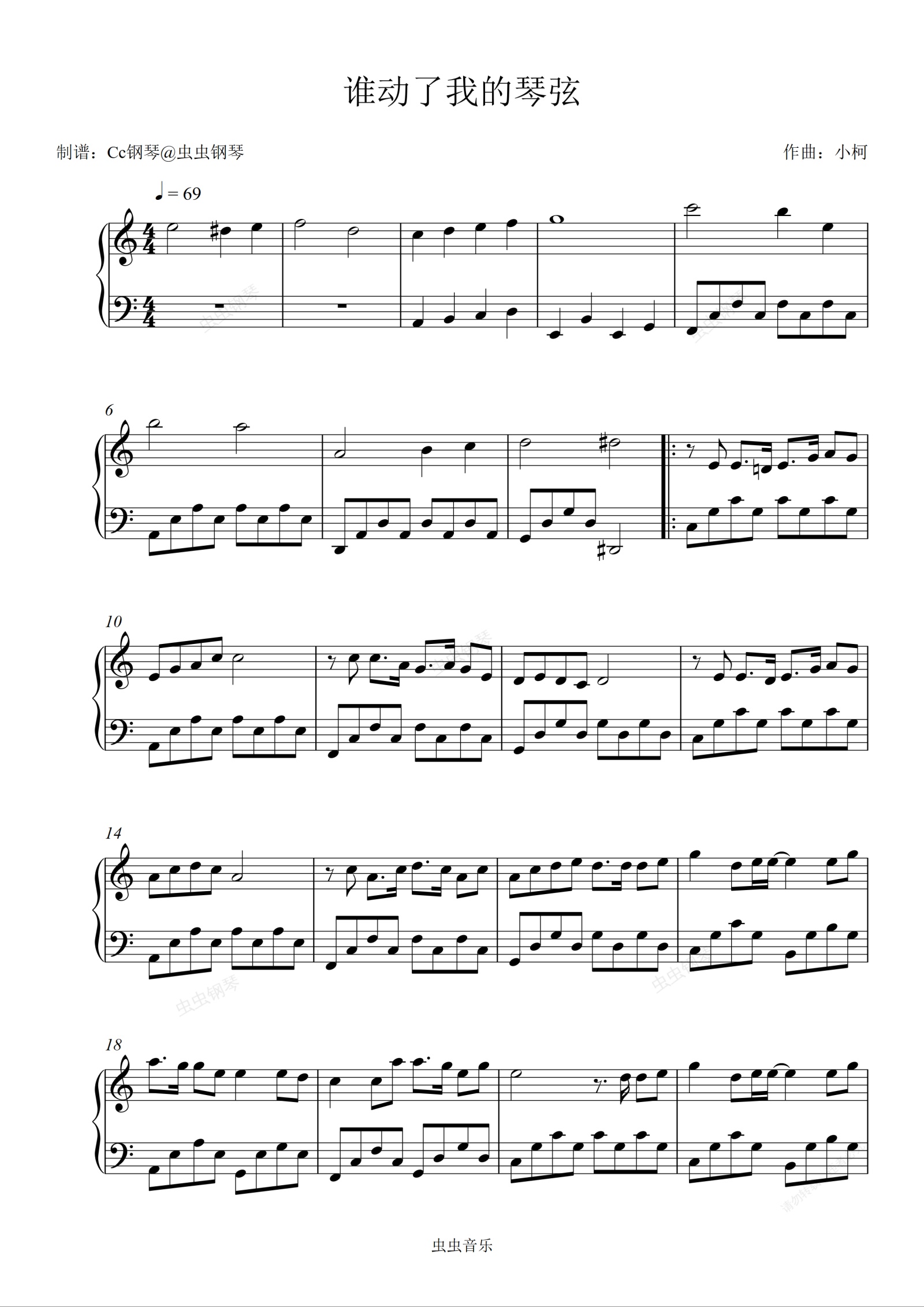 钢琴谱:谁动了我的琴弦 C调 好听易上手