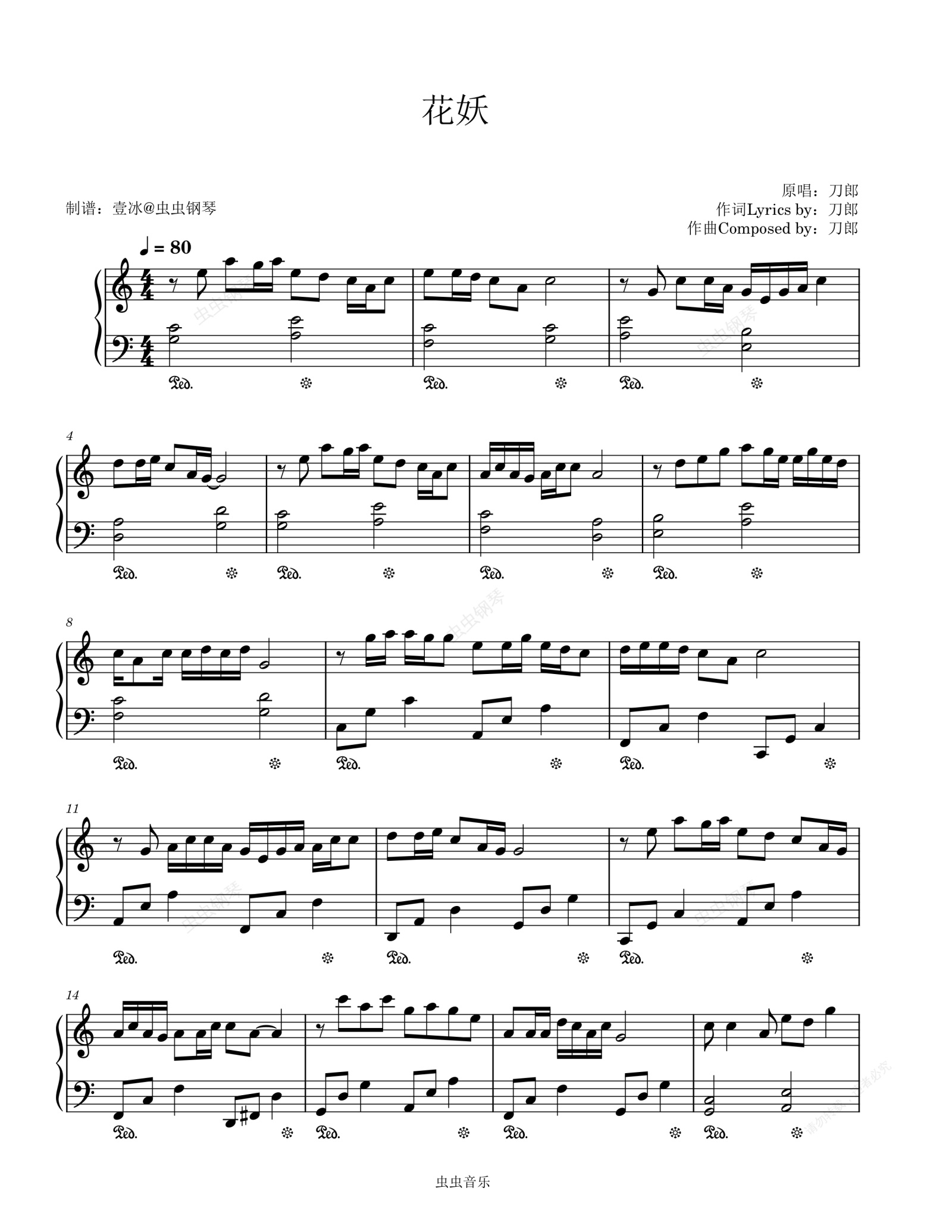 钢琴谱:花妖//刀郎 - C调 简单易上手