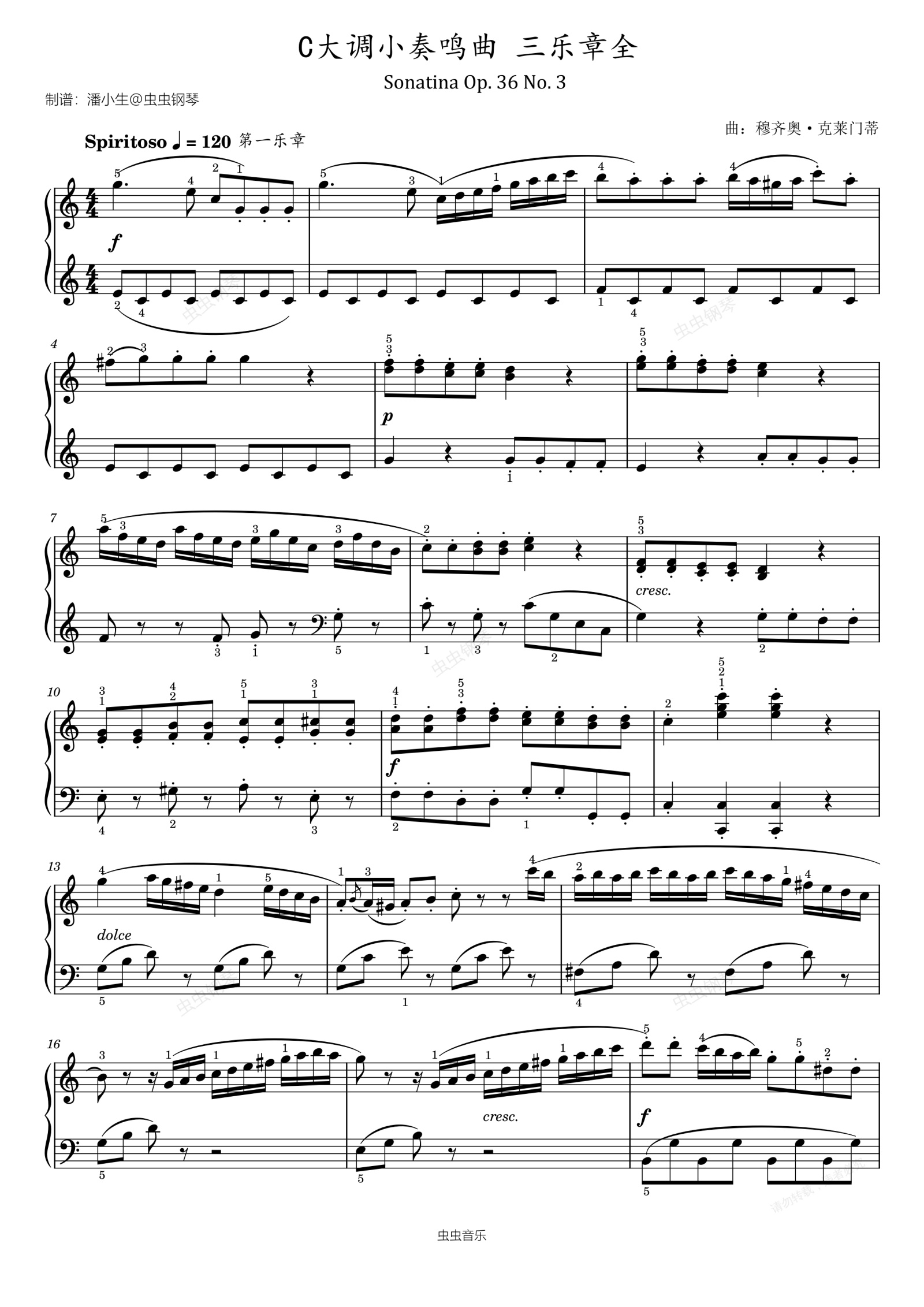 钢琴谱:克列门蒂 C大调小奏鸣曲 原版带指法 (Sonatina Op. 36 No. 3) 三乐章全