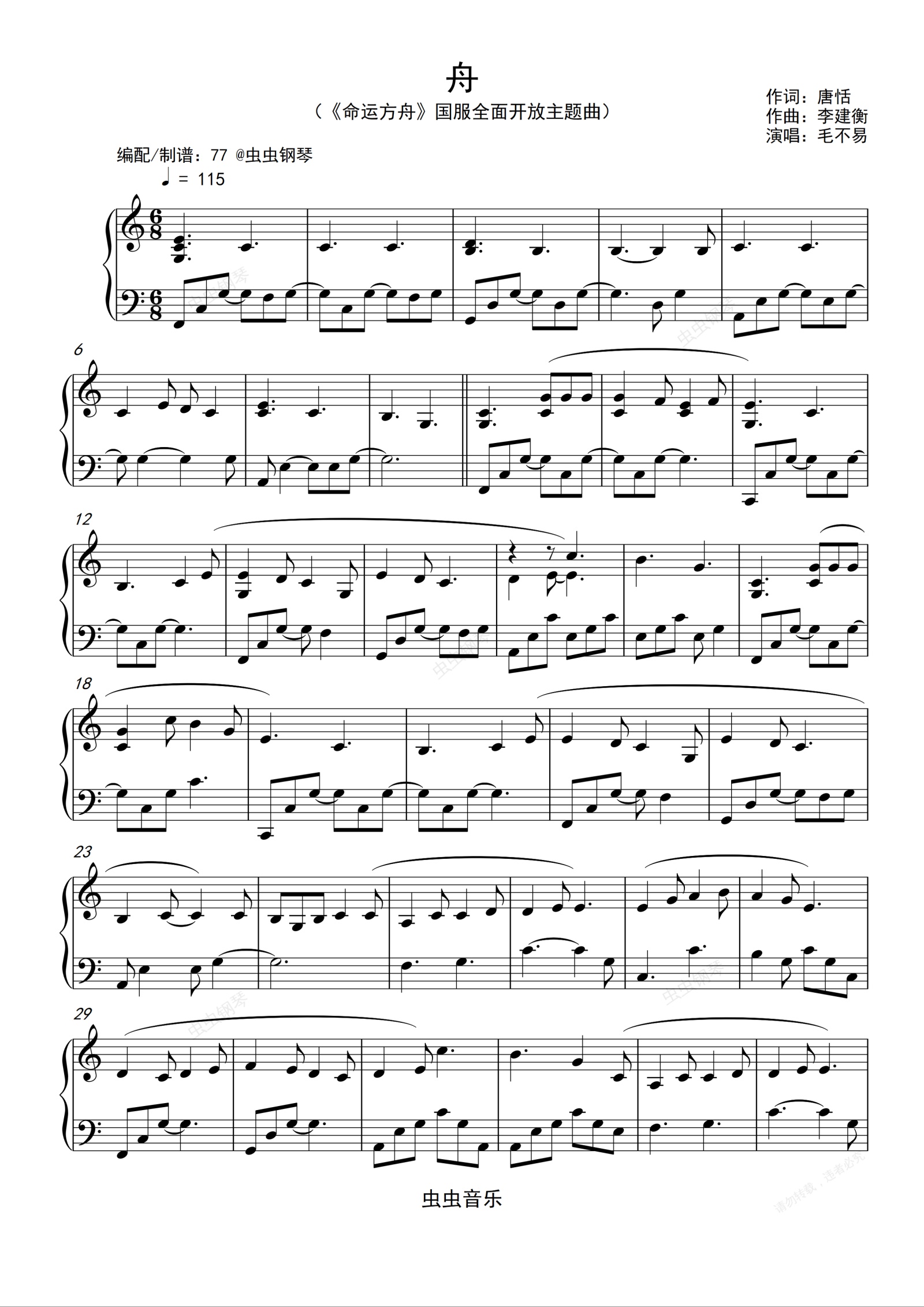 钢琴谱:毛不易-《舟》钢琴独奏谱