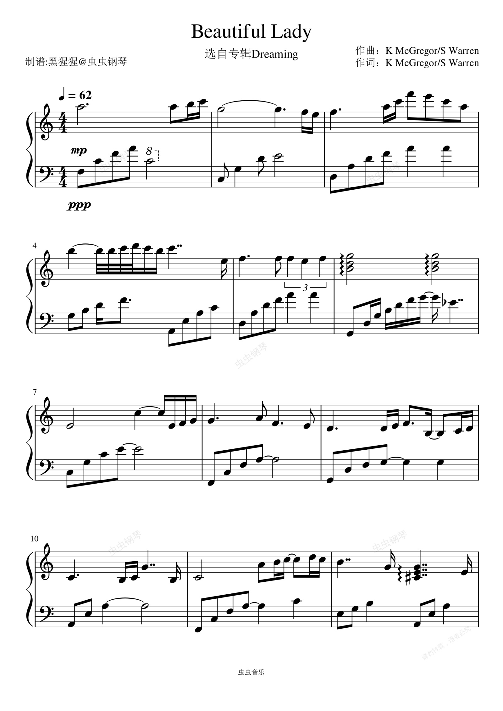 钢琴谱:神圣布朗/吉普赛-C调 《beautiful lady》