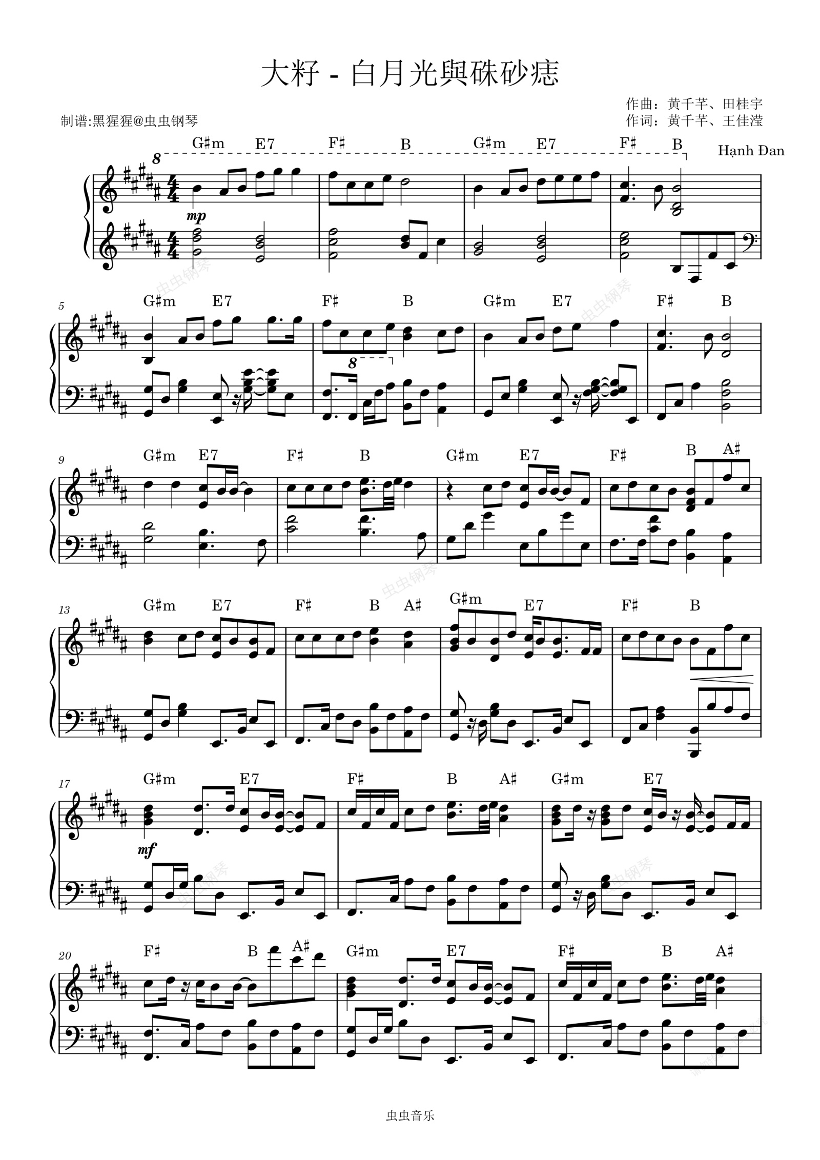 钢琴谱:大籽-B调 《白月光与朱砂痣》