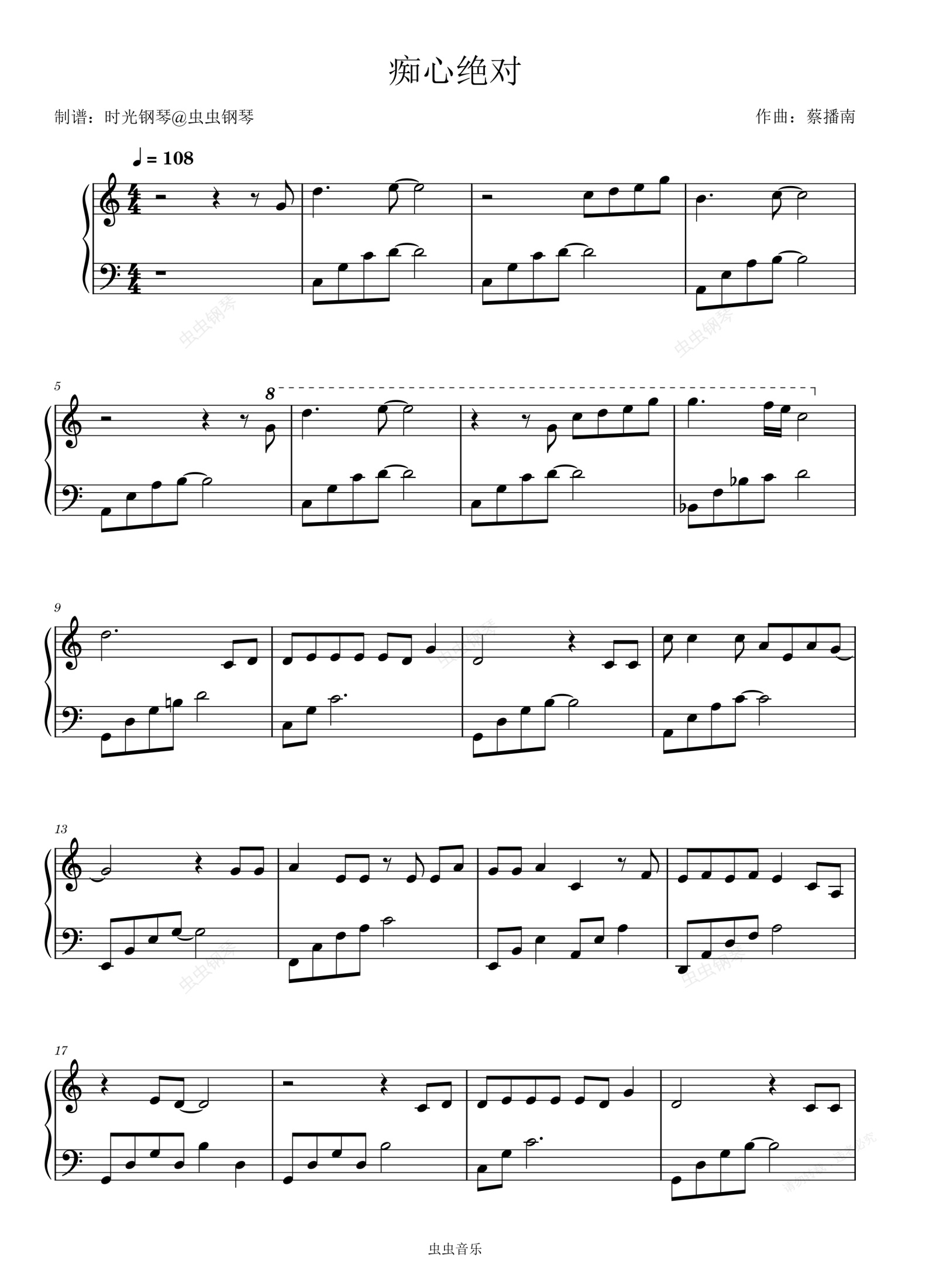 钢琴谱:痴心绝对 李圣杰 简单好听