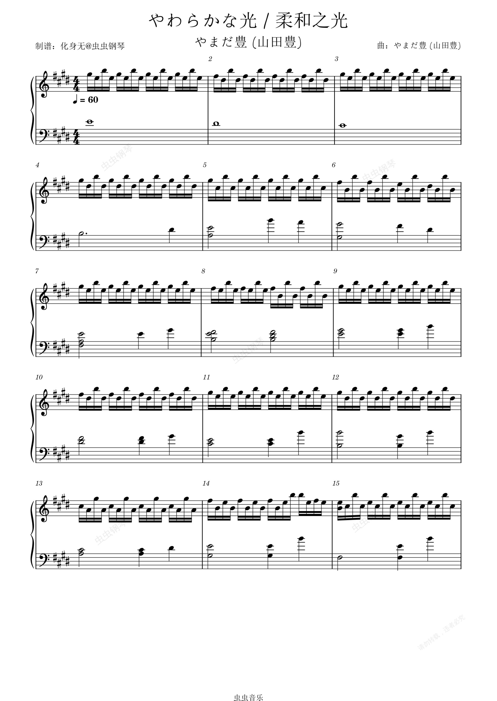 钢琴谱:やわらかな光 / 柔和之光 化身无编配