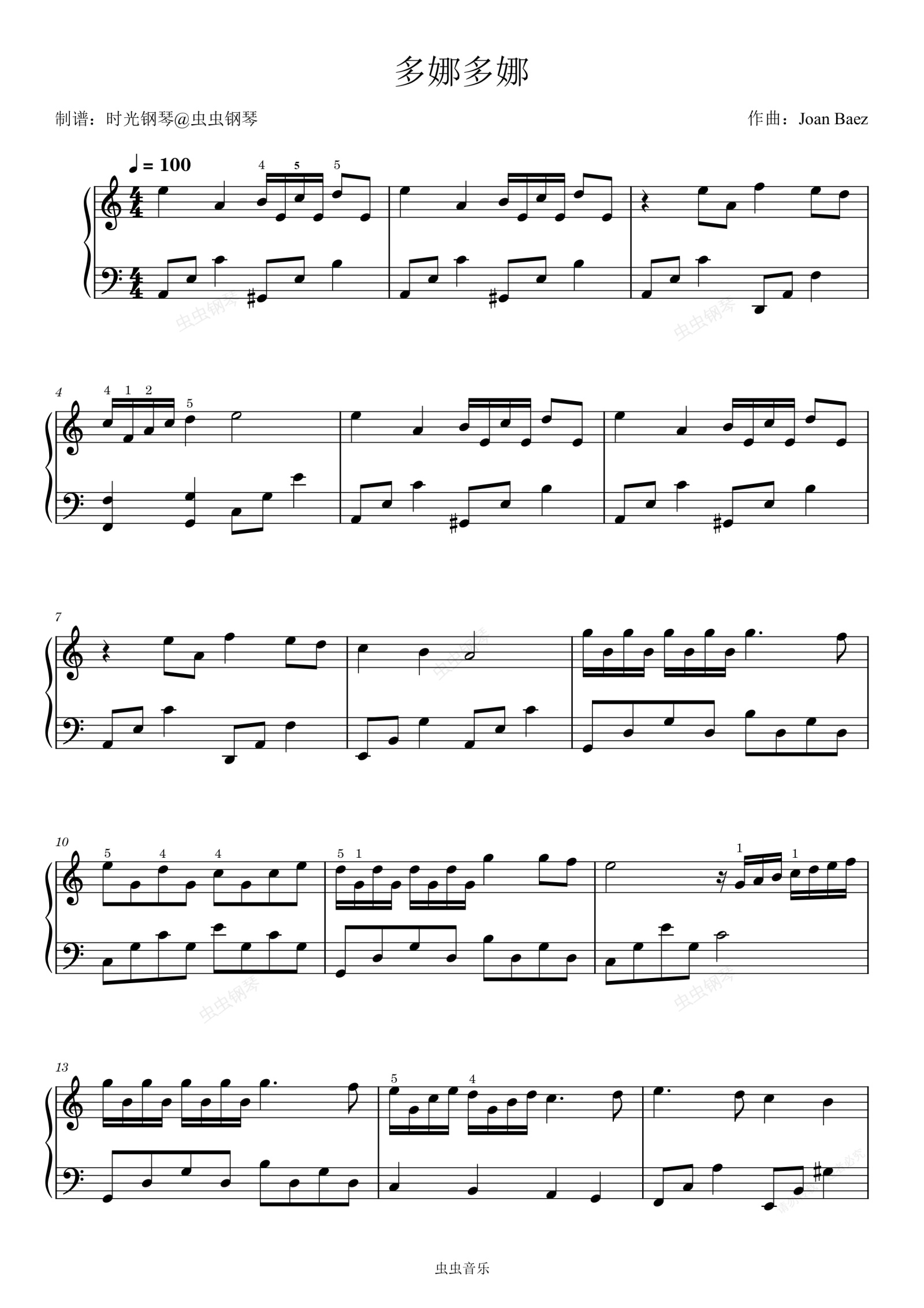 钢琴谱:多娜多娜 Joan Baez 简单好听(C调加指法版)