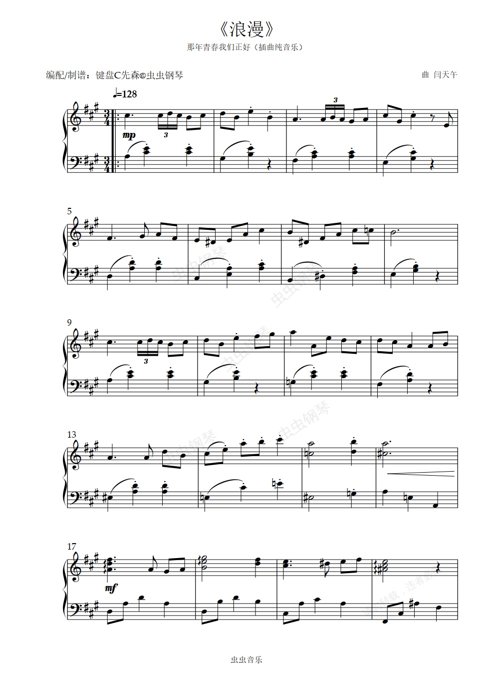 钢琴谱:《浪漫》-A调独奏-那年青春我们正好(插曲纯音乐)抖音配乐经常出现