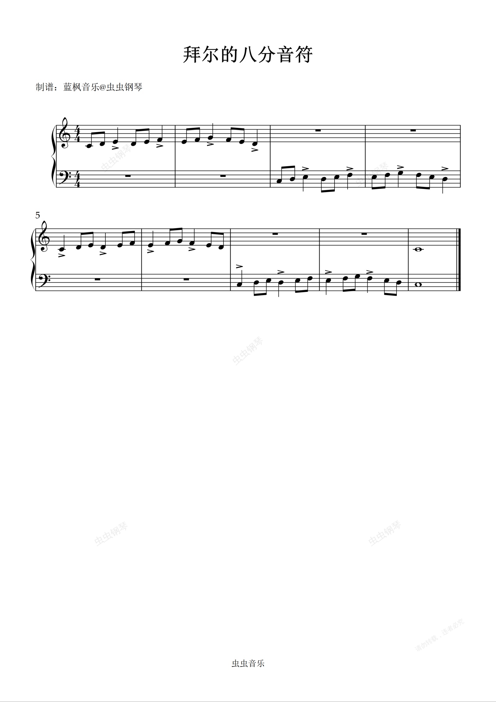 钢琴谱:拜尔的八分音符