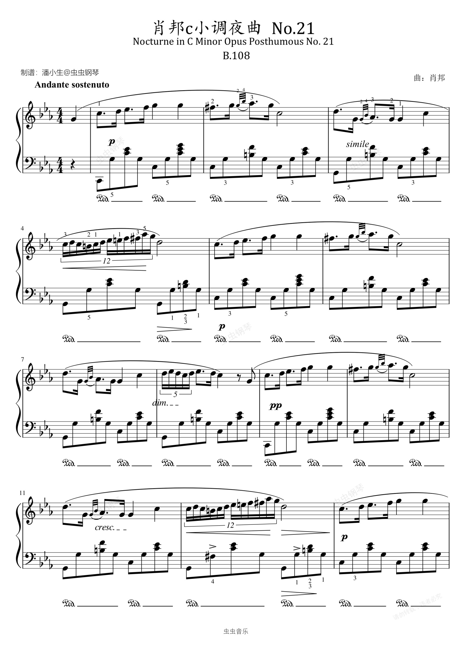 钢琴谱:肖邦 c小调夜曲 No.21 原版带指法  21号作品遗作 Opus Posthumous B.180