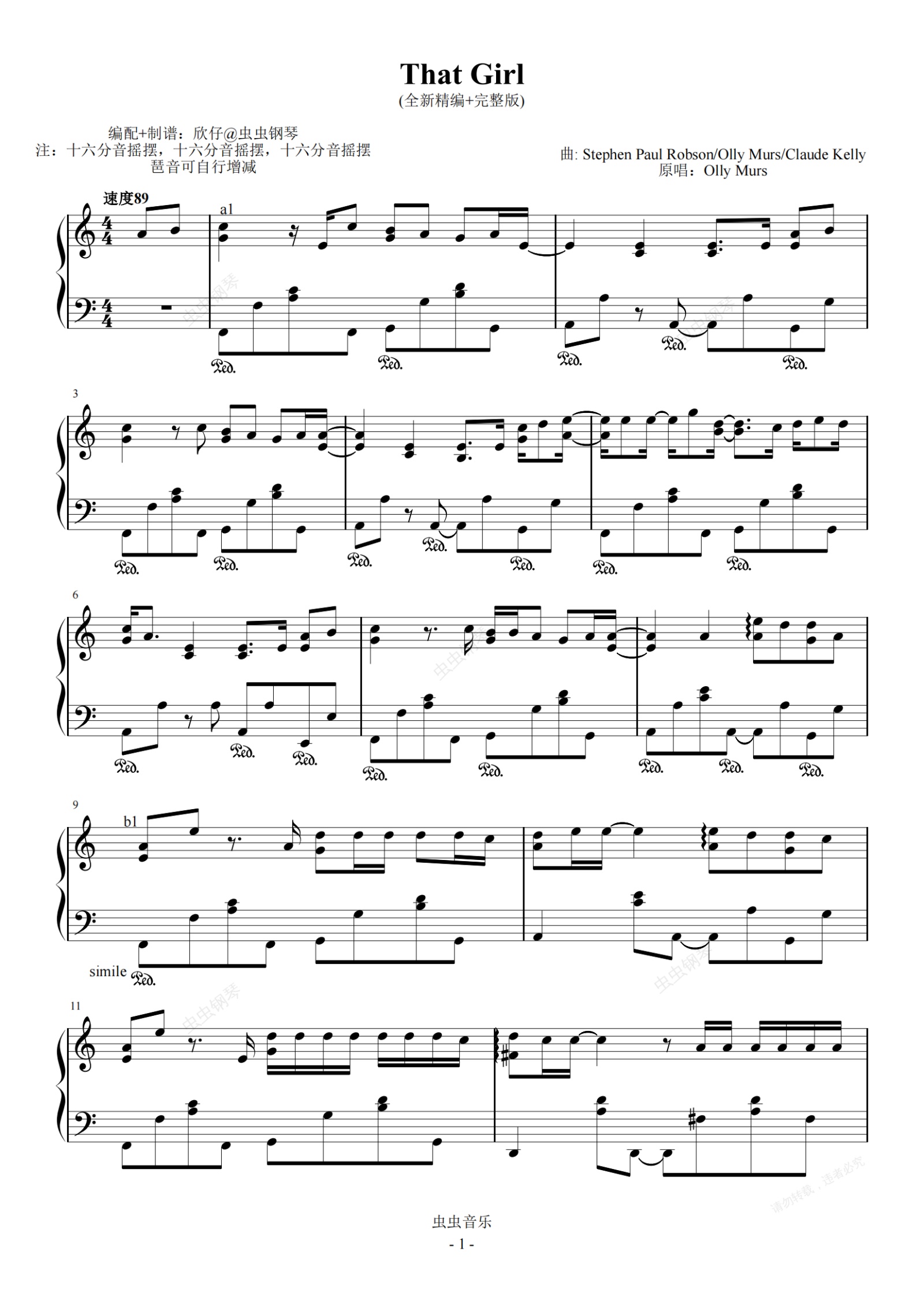 钢琴谱:Olly Murs-a《That Girl》(全新精编+完整版)