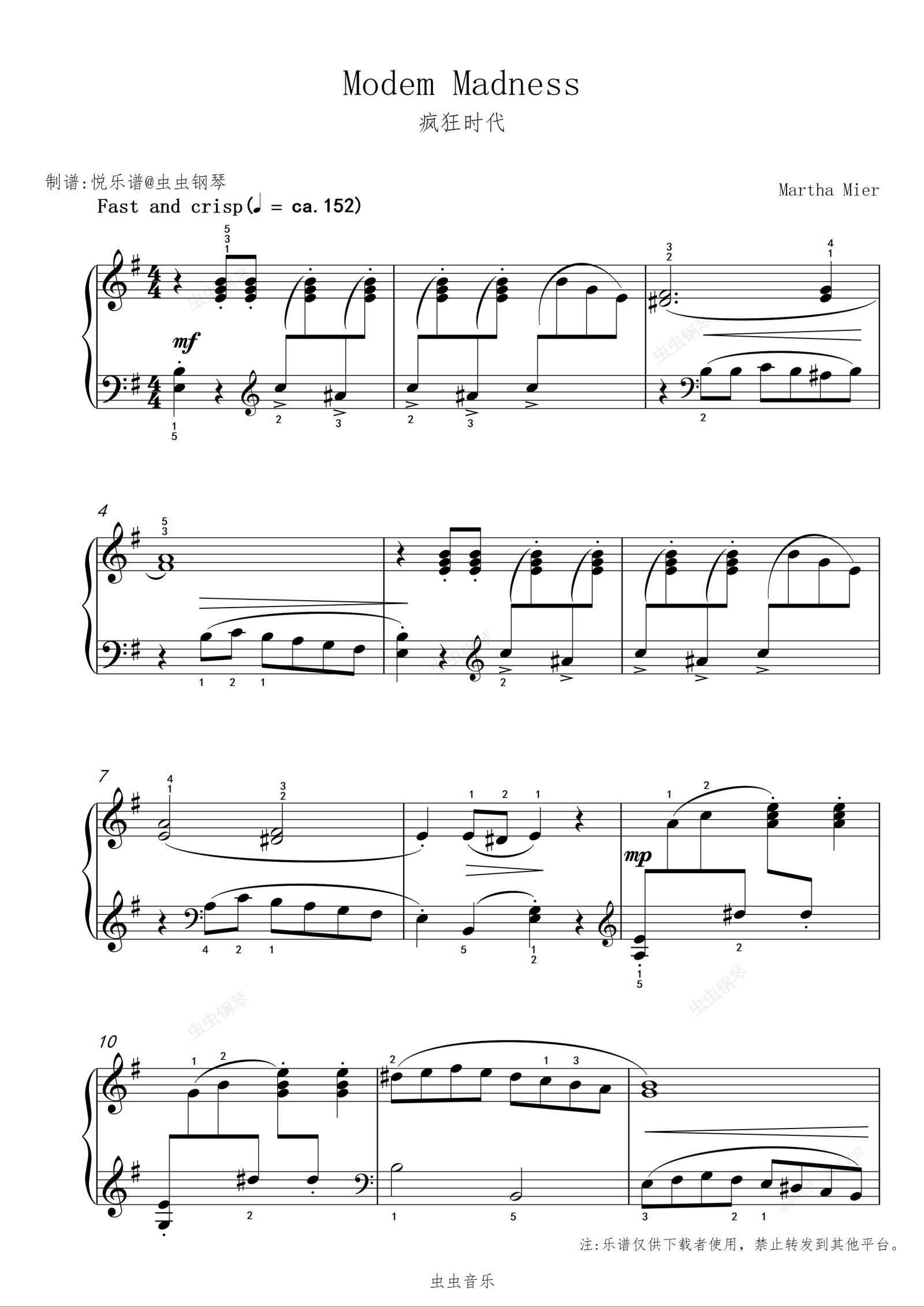 钢琴谱:疯狂时代//Modem Madness【匆忙】