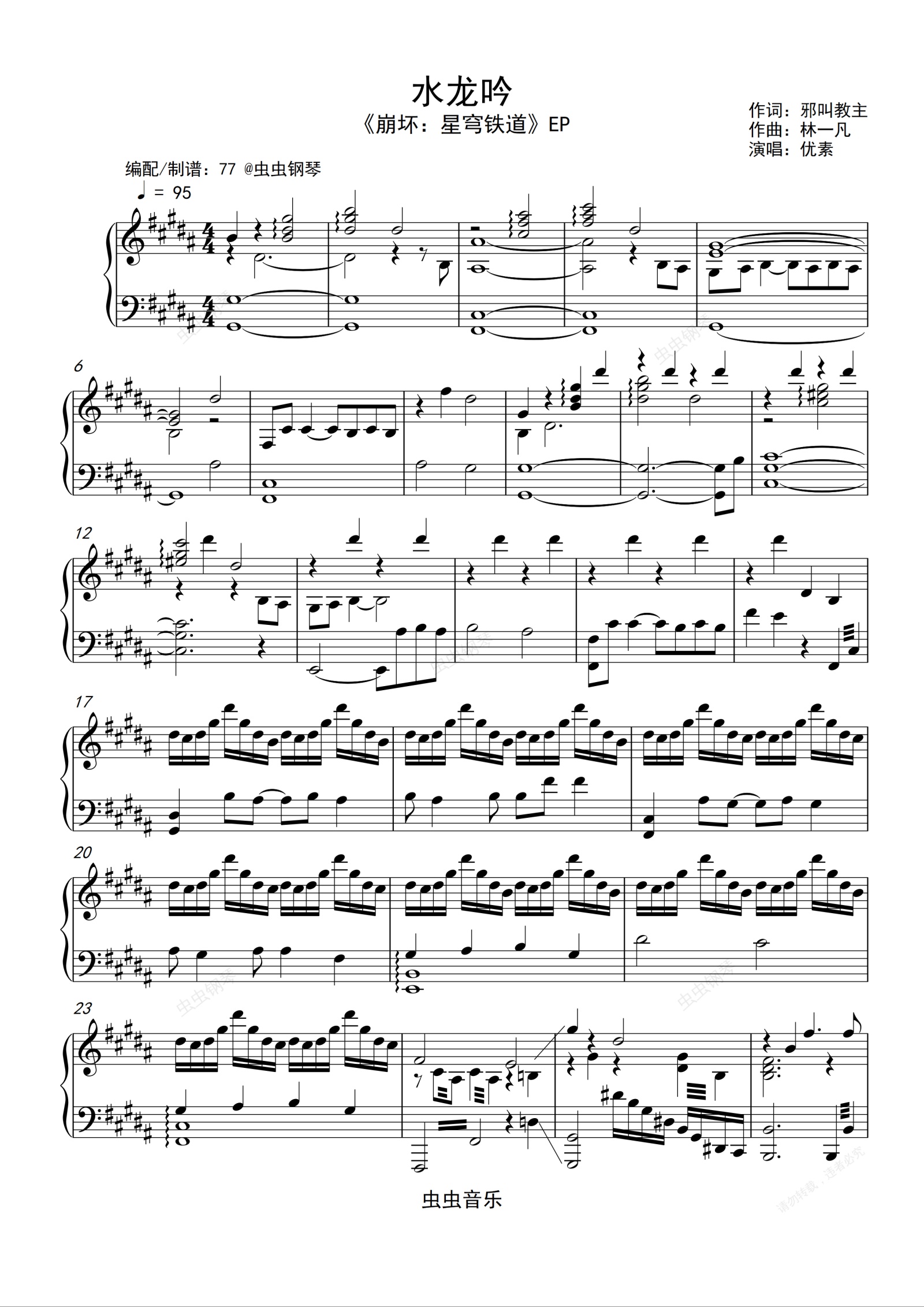 钢琴谱:「水龙吟」《崩坏:星穹铁道》EP 钢琴独奏谱 原调