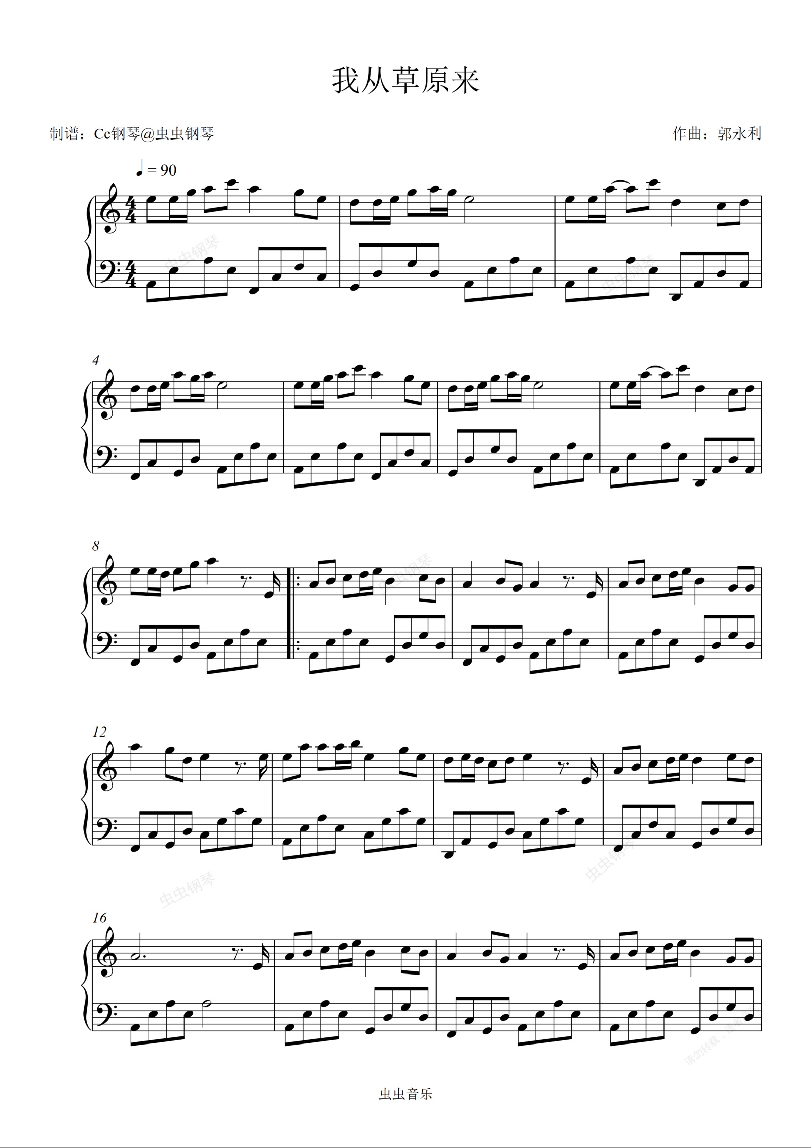 钢琴谱:我从草原来 C调 好听易上手