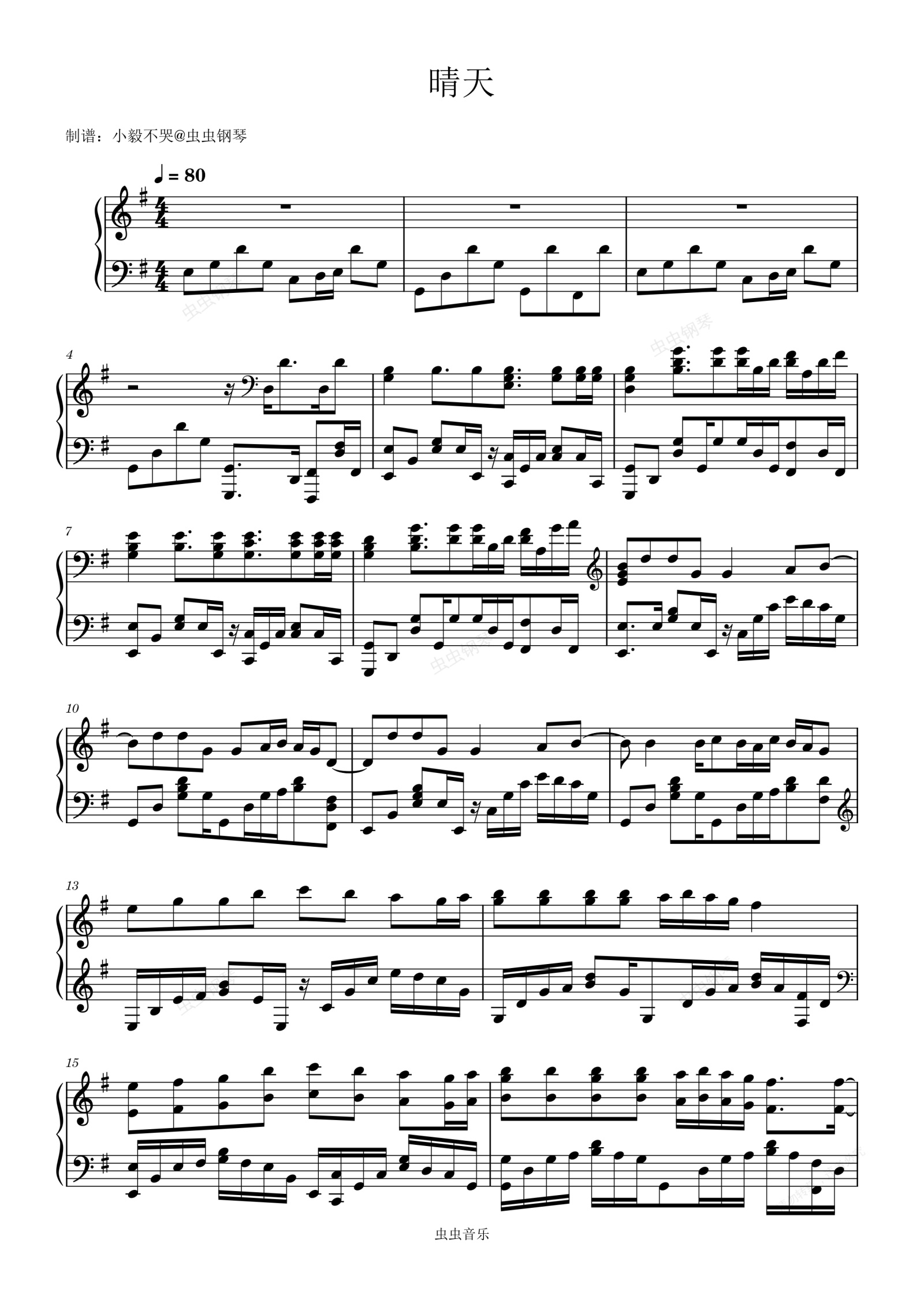 钢琴谱:晴天--周杰伦 G大调完美还原版
