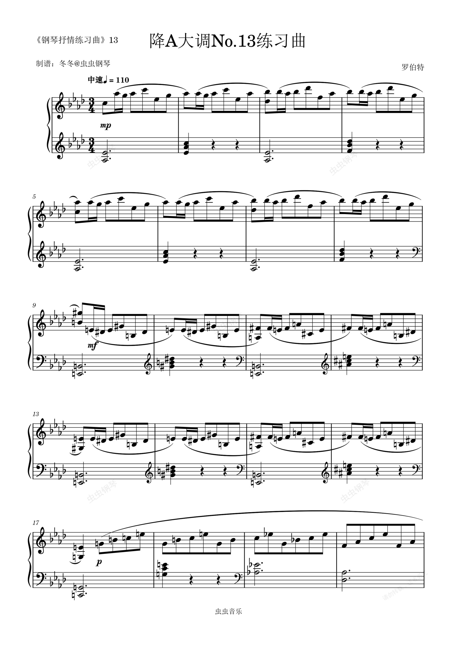 钢琴谱:降A大调No.13练习曲