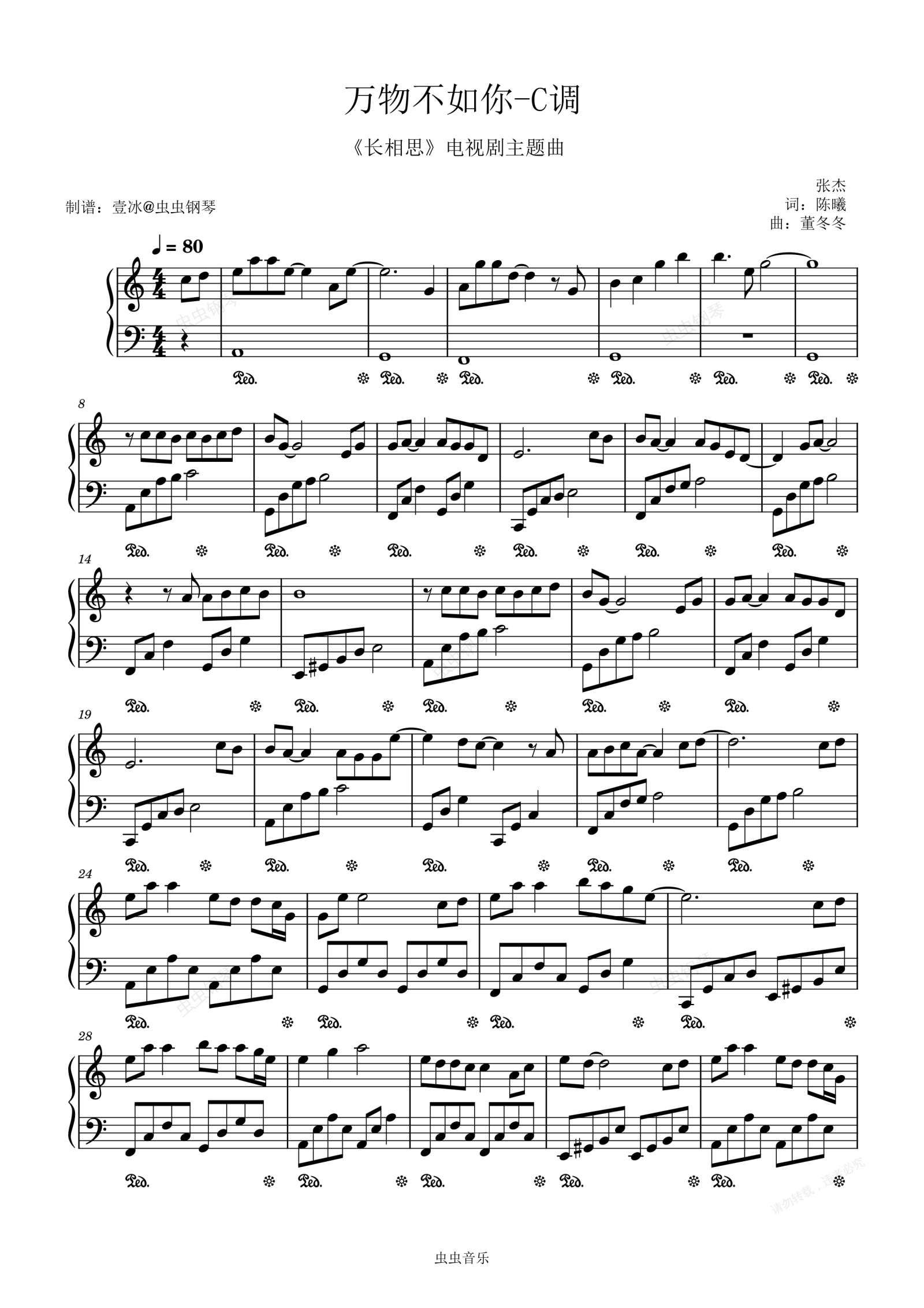 钢琴谱:万物不如你 (《长相思》电视剧主题曲) - C调