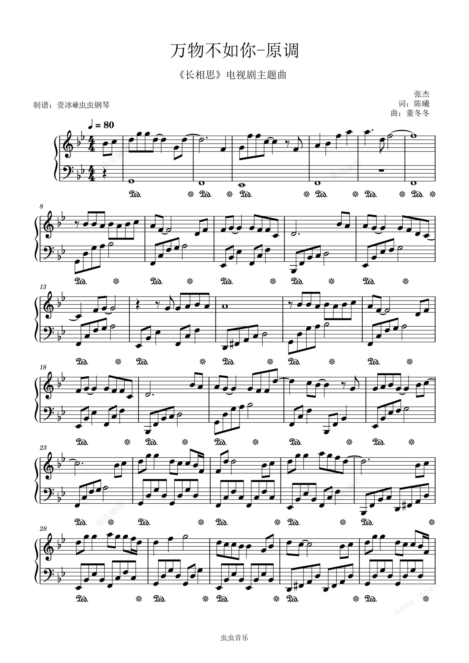 钢琴谱:万物不如你 (《长相思》电视剧主题曲)  - 原调