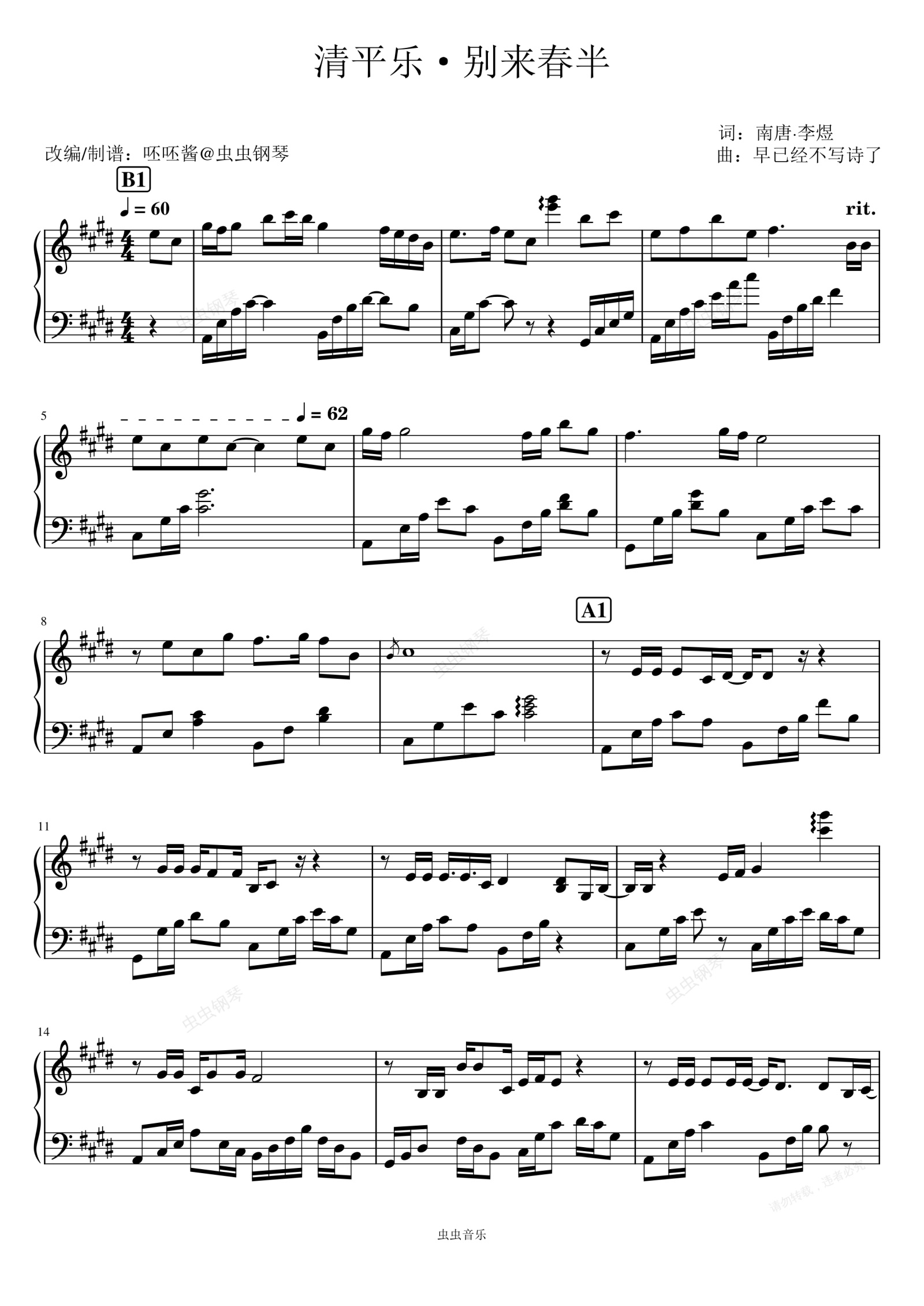 钢琴谱:清平乐·别来春半【独奏完整版】-早已经不写诗了