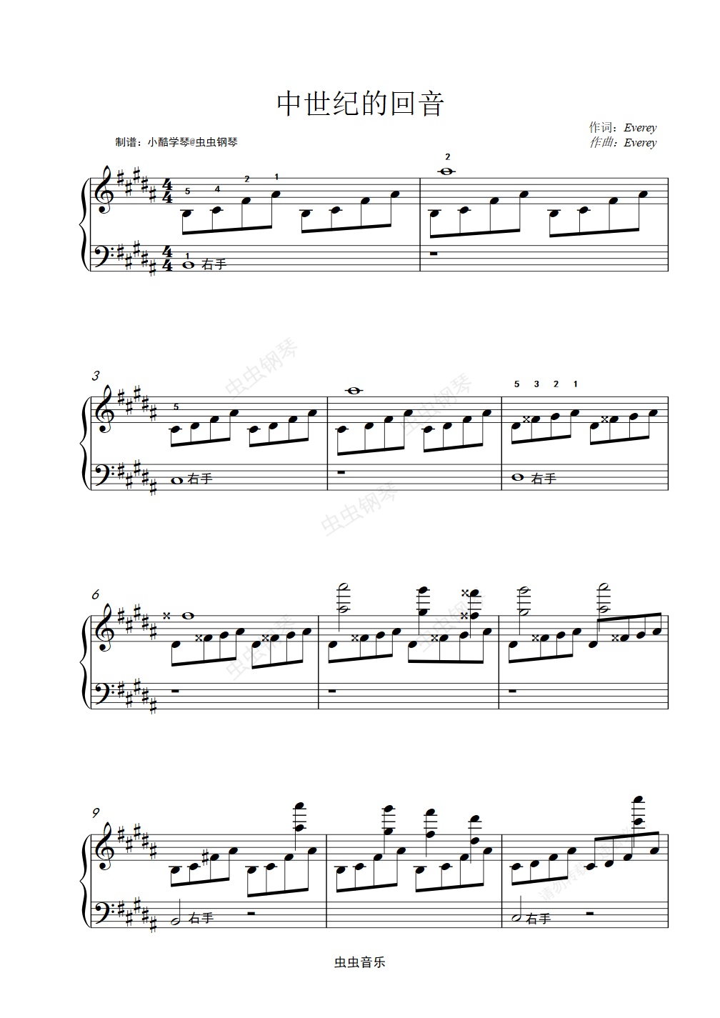 钢琴谱:《中世纪的回音》超级还原版——主页有视频演示