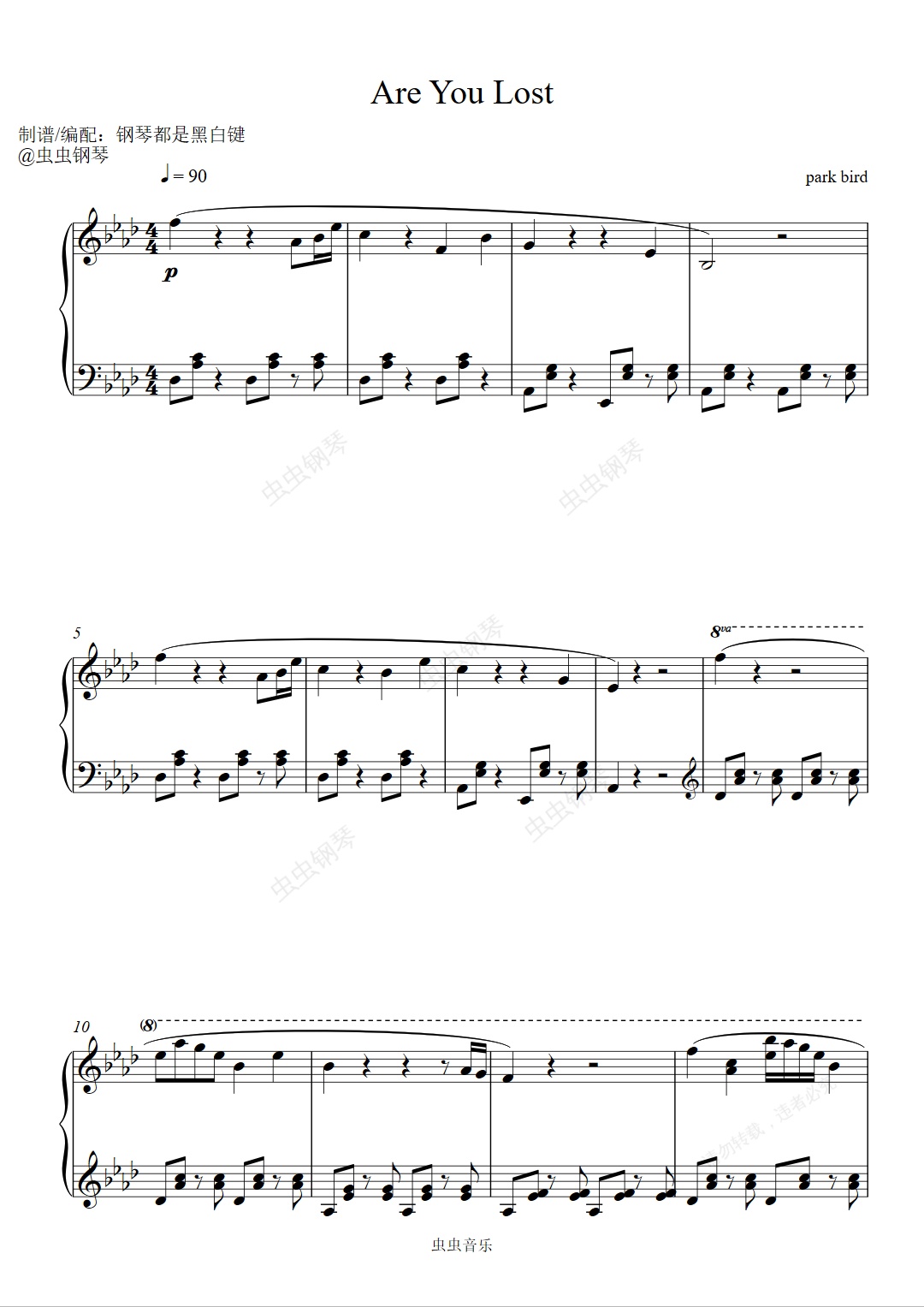 钢琴谱:Are You Lost - 治愈纯音乐【好听易弹演奏版】