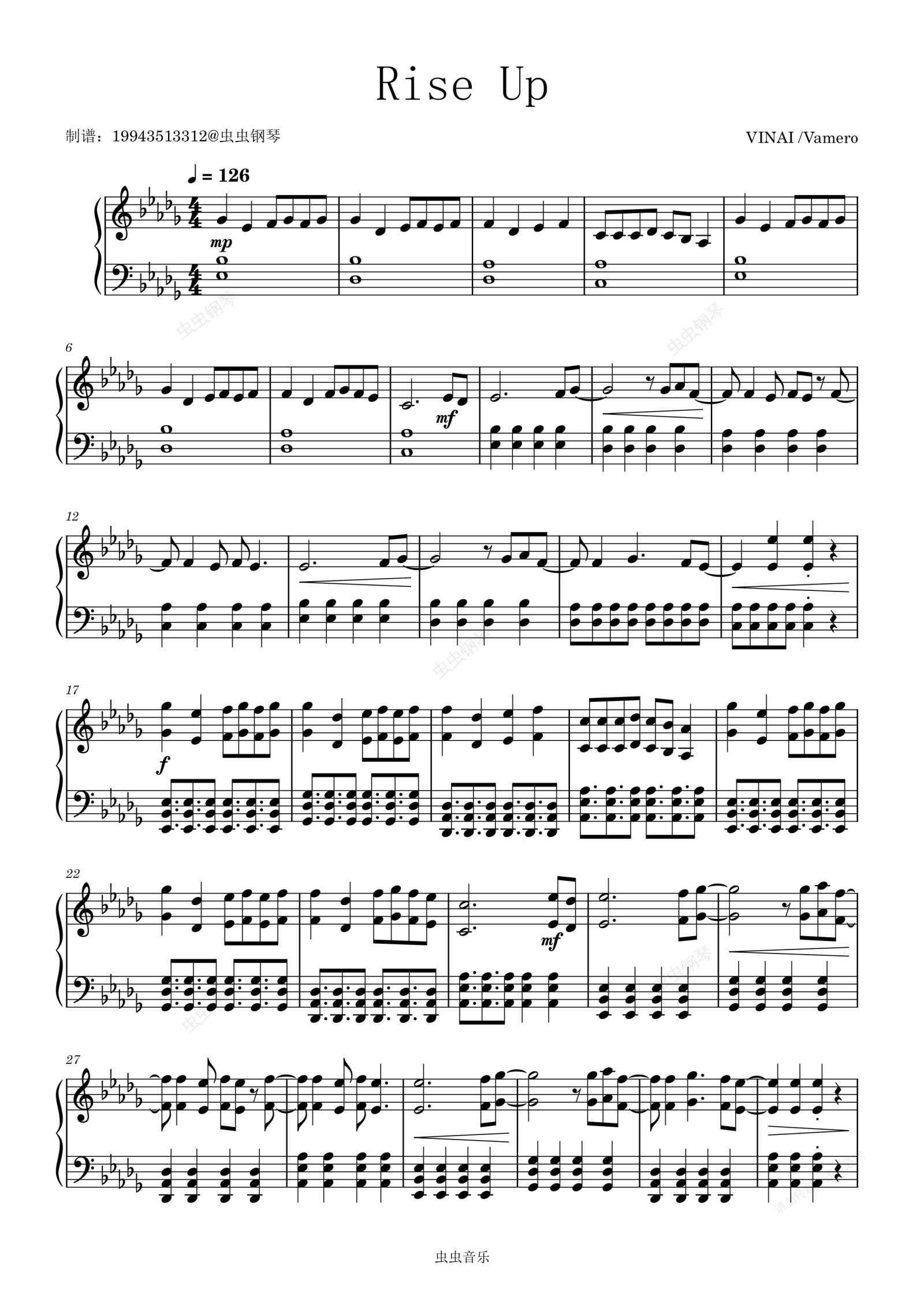 钢琴谱:Rise Up(feat. Vamero) - VINAI/Vamero