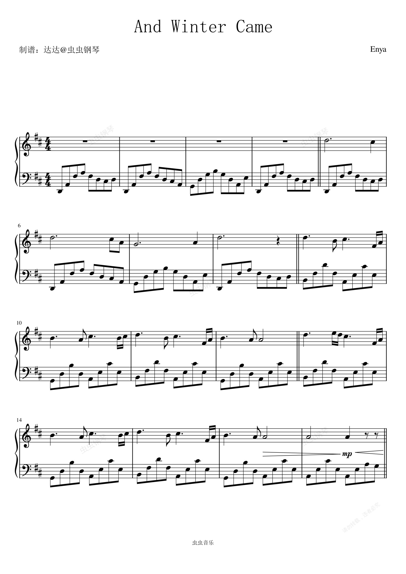 钢琴谱:And Winter Came - Enya