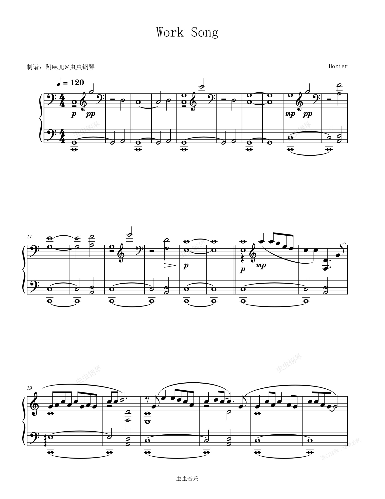 钢琴谱:Work Song - Hozier
