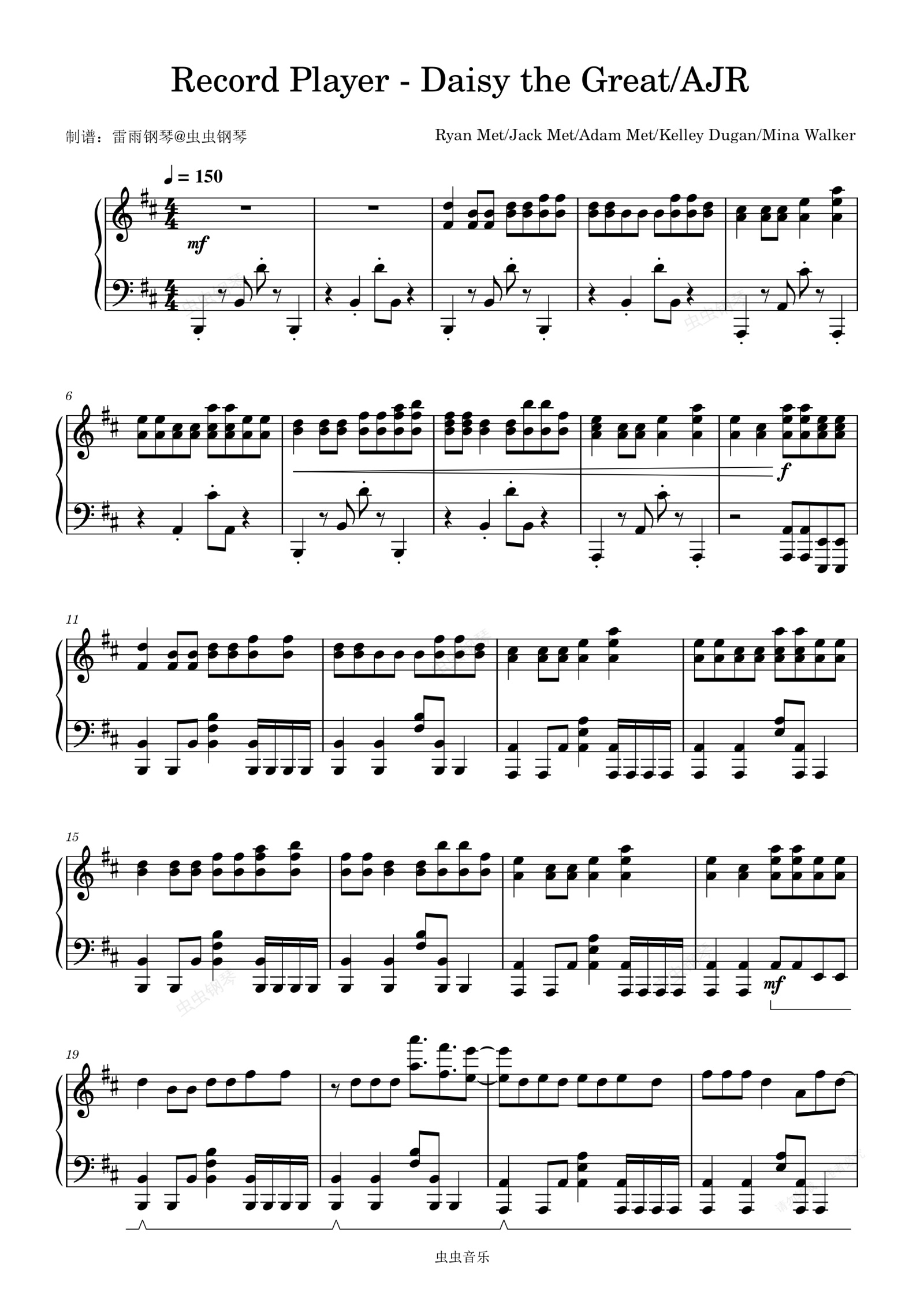 钢琴谱:Record Player - Daisy the Great/AJR