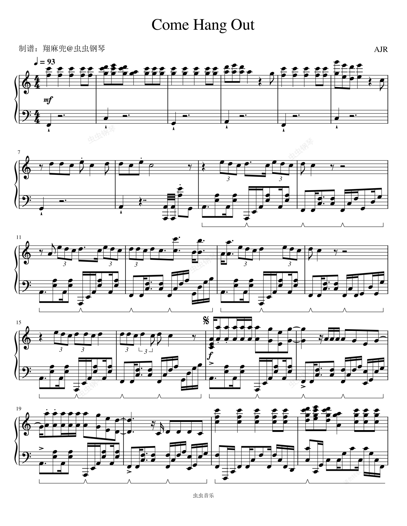 钢琴谱:Come Hang Out (快来一起玩) - AJR
