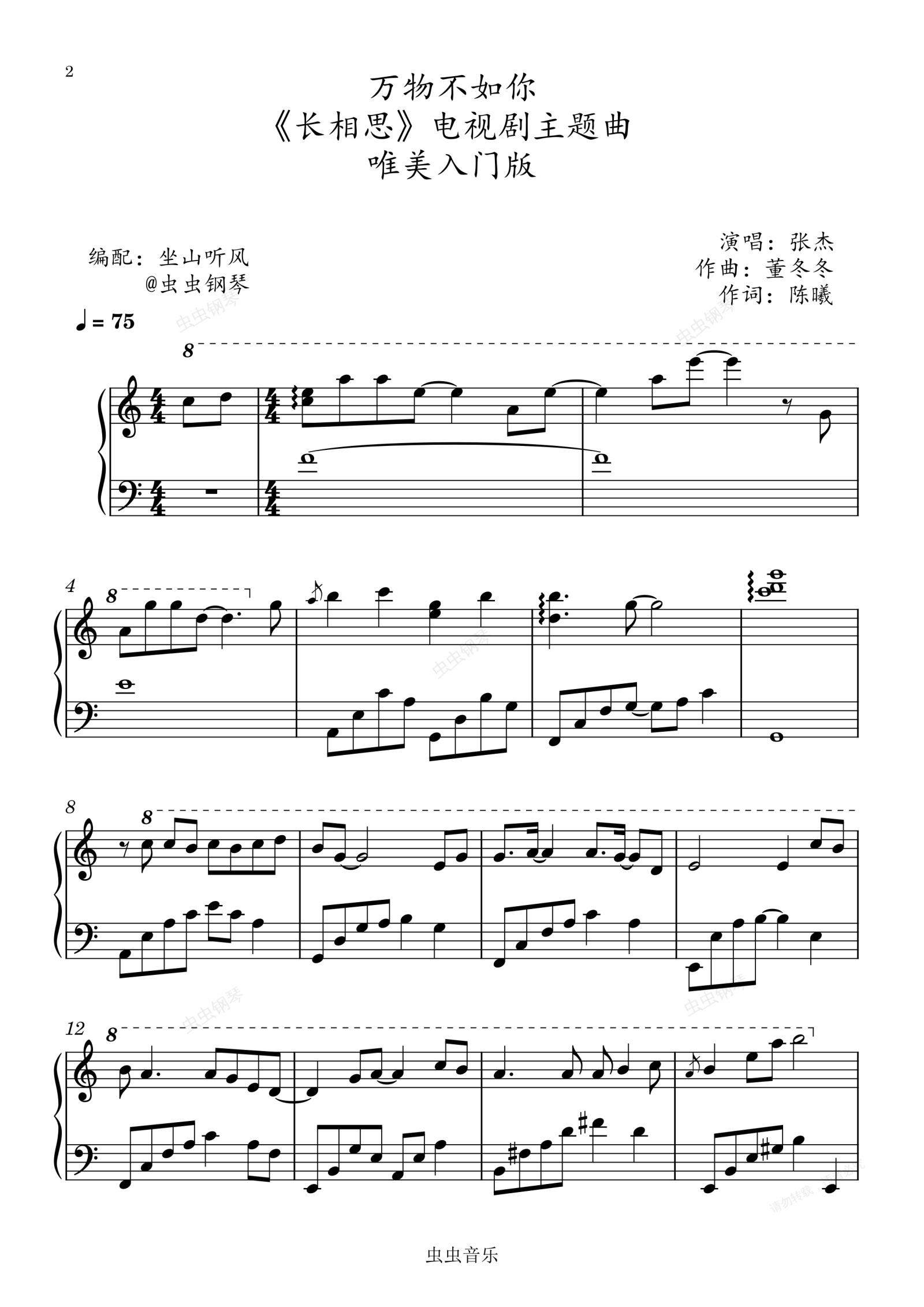 钢琴谱:万物不如你——《长相思》电视剧主题曲 唯美入门版