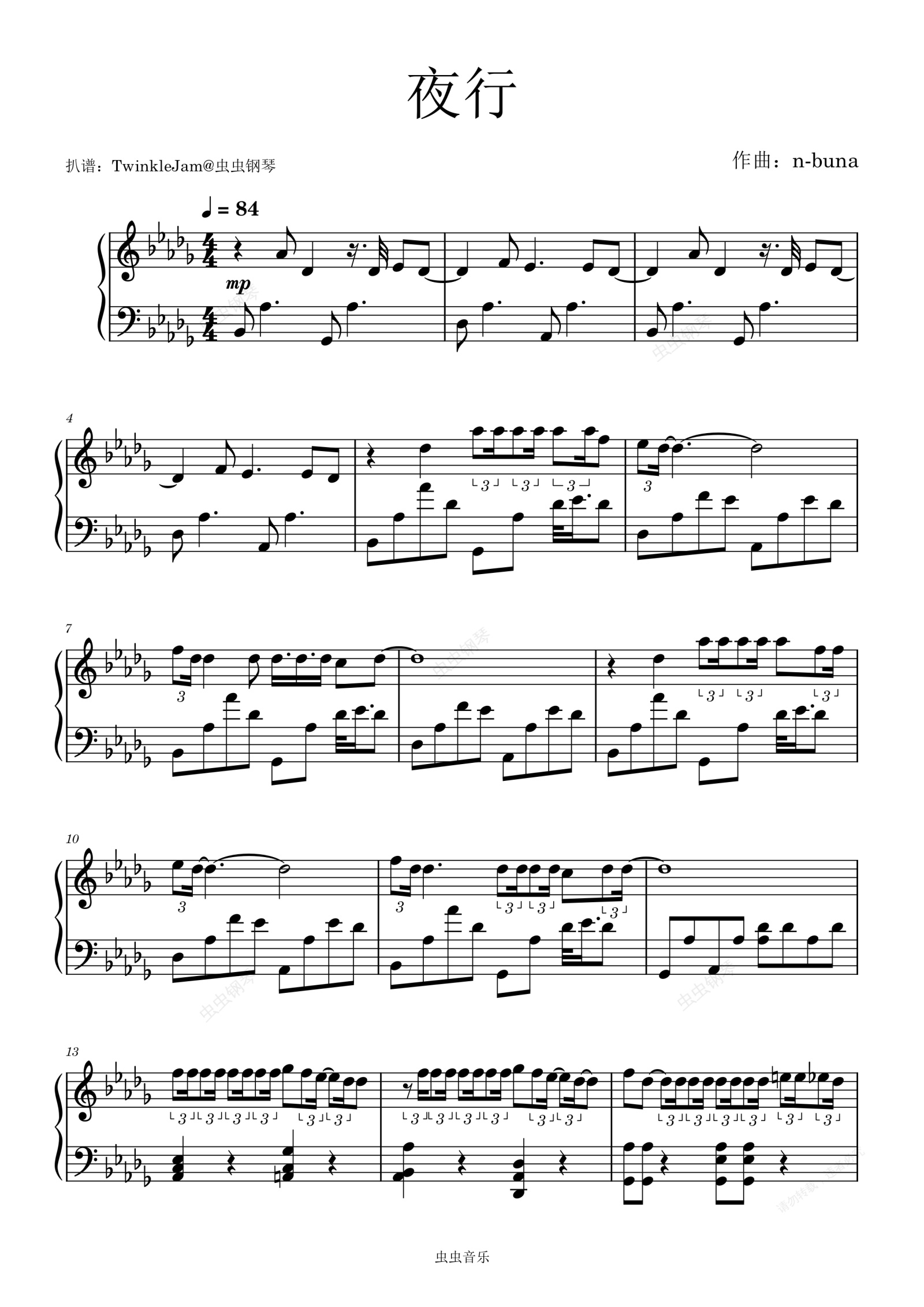 钢琴谱:夜行+花に亡霊(花上的亡灵) - ヨルシカ
