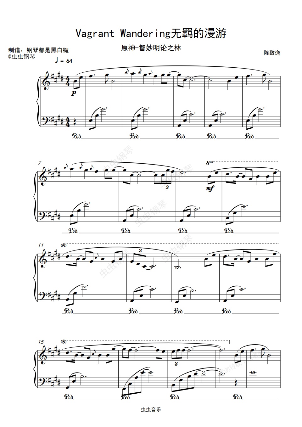 钢琴谱:【原神】Vagrant Wandering无羁的漫游 【治愈纯音乐钢琴演奏版】