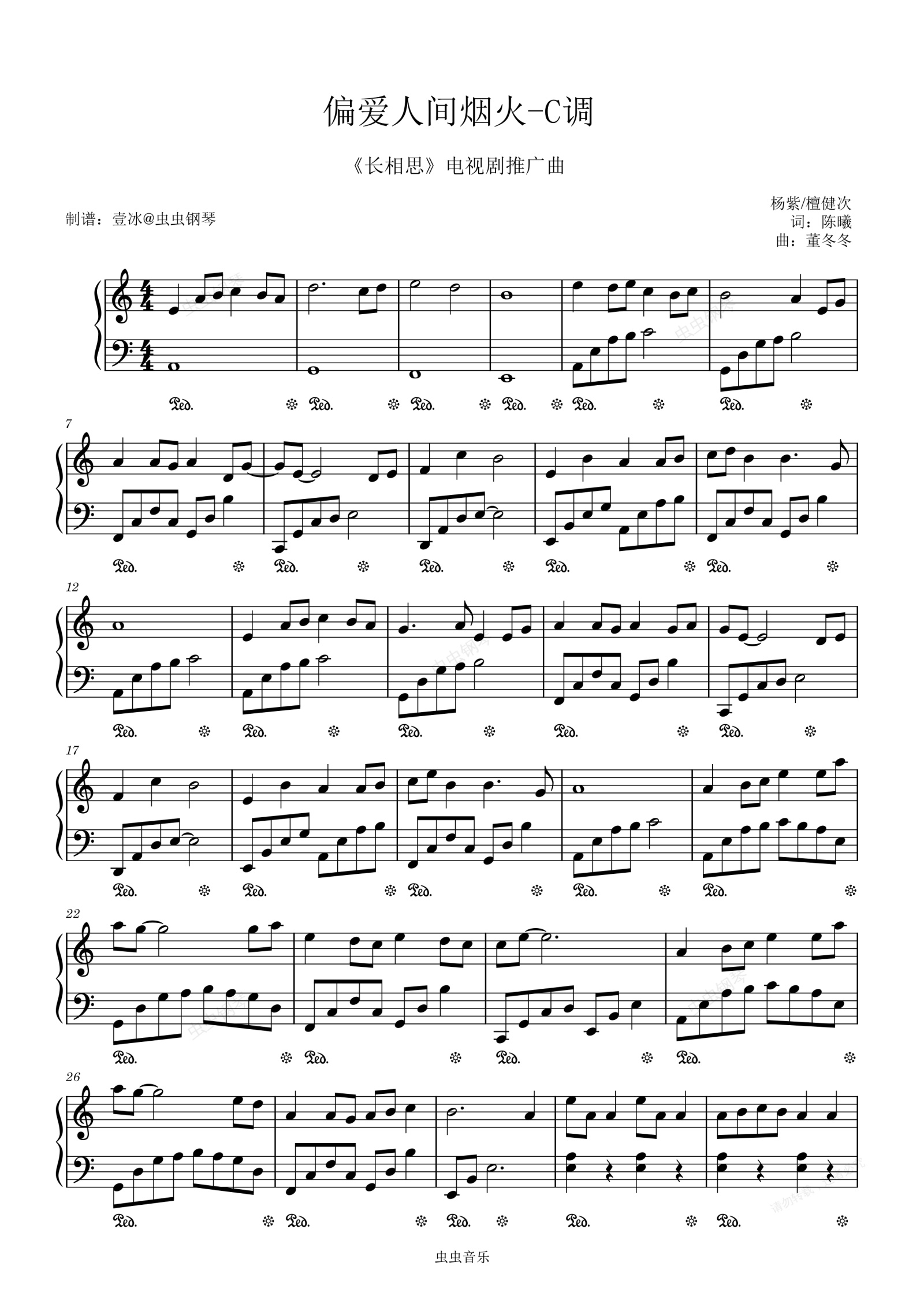 钢琴谱:偏爱人间烟火// (《长相思》电视剧推广曲) - C调
