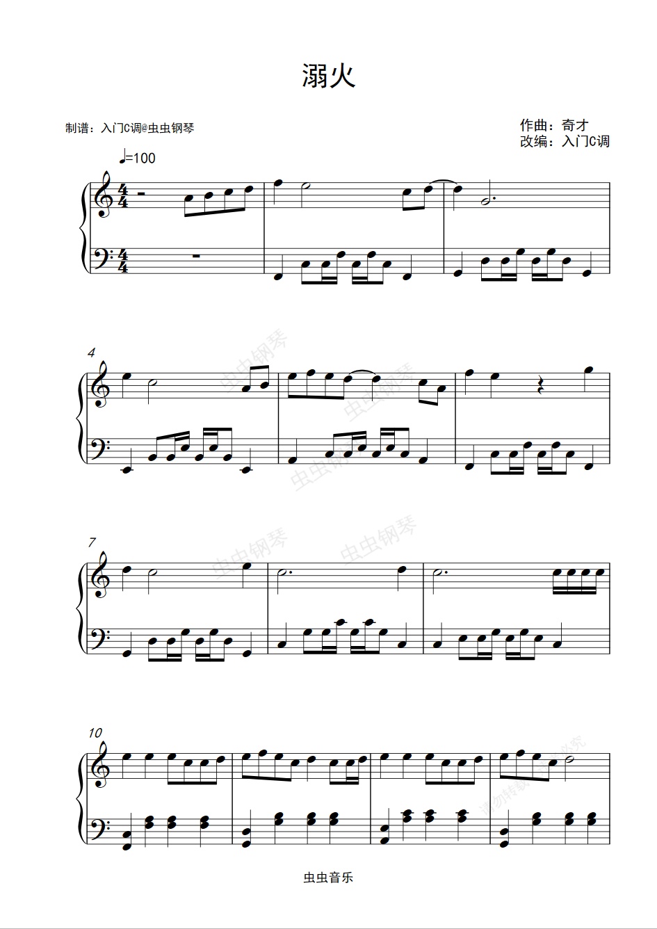 钢琴谱:MANTA《溺火》(虚拟偶像团综《一起再出发》MANTA二周年曲)入门C调简单版