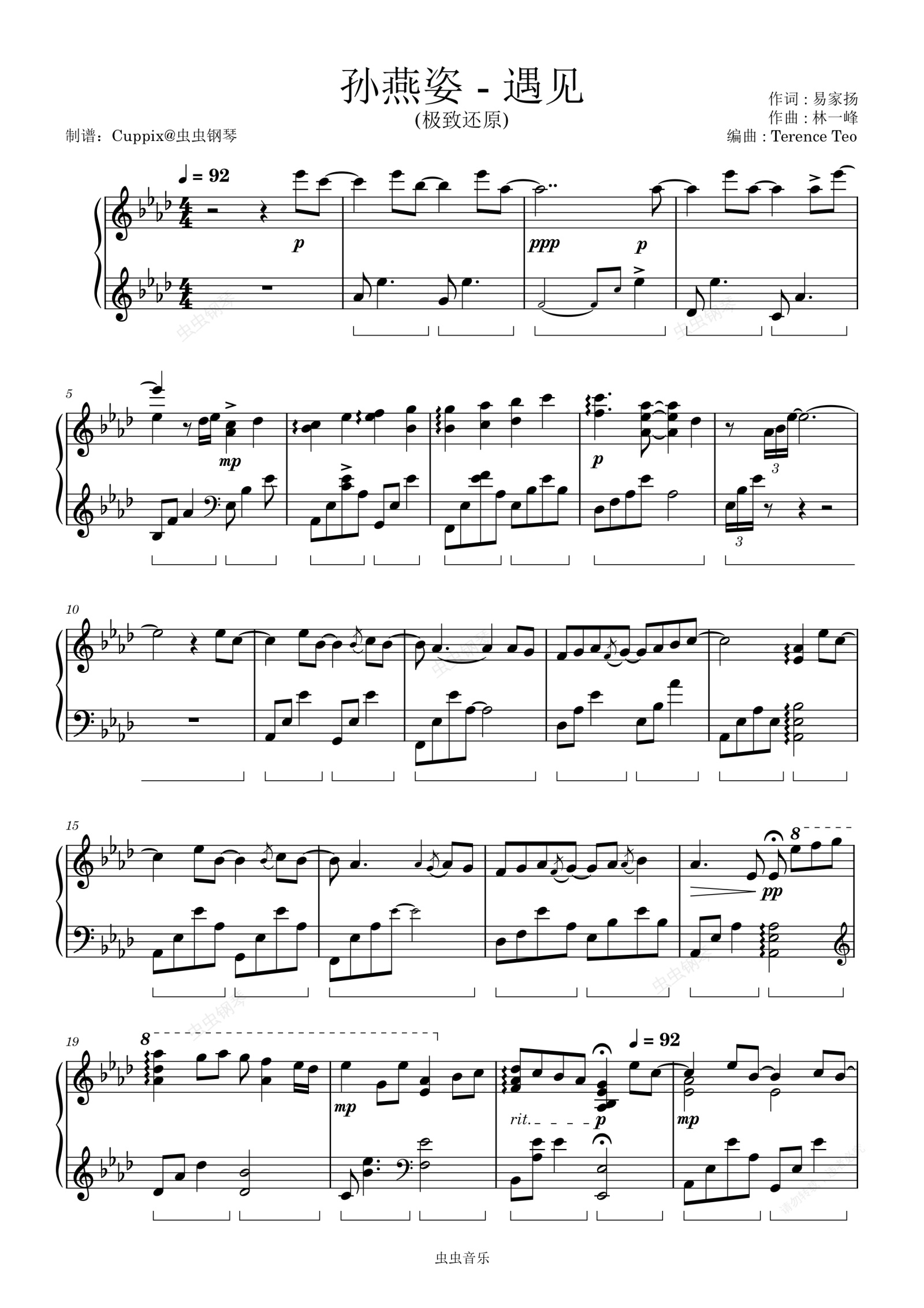钢琴谱:孙燕姿《遇见》极致还原