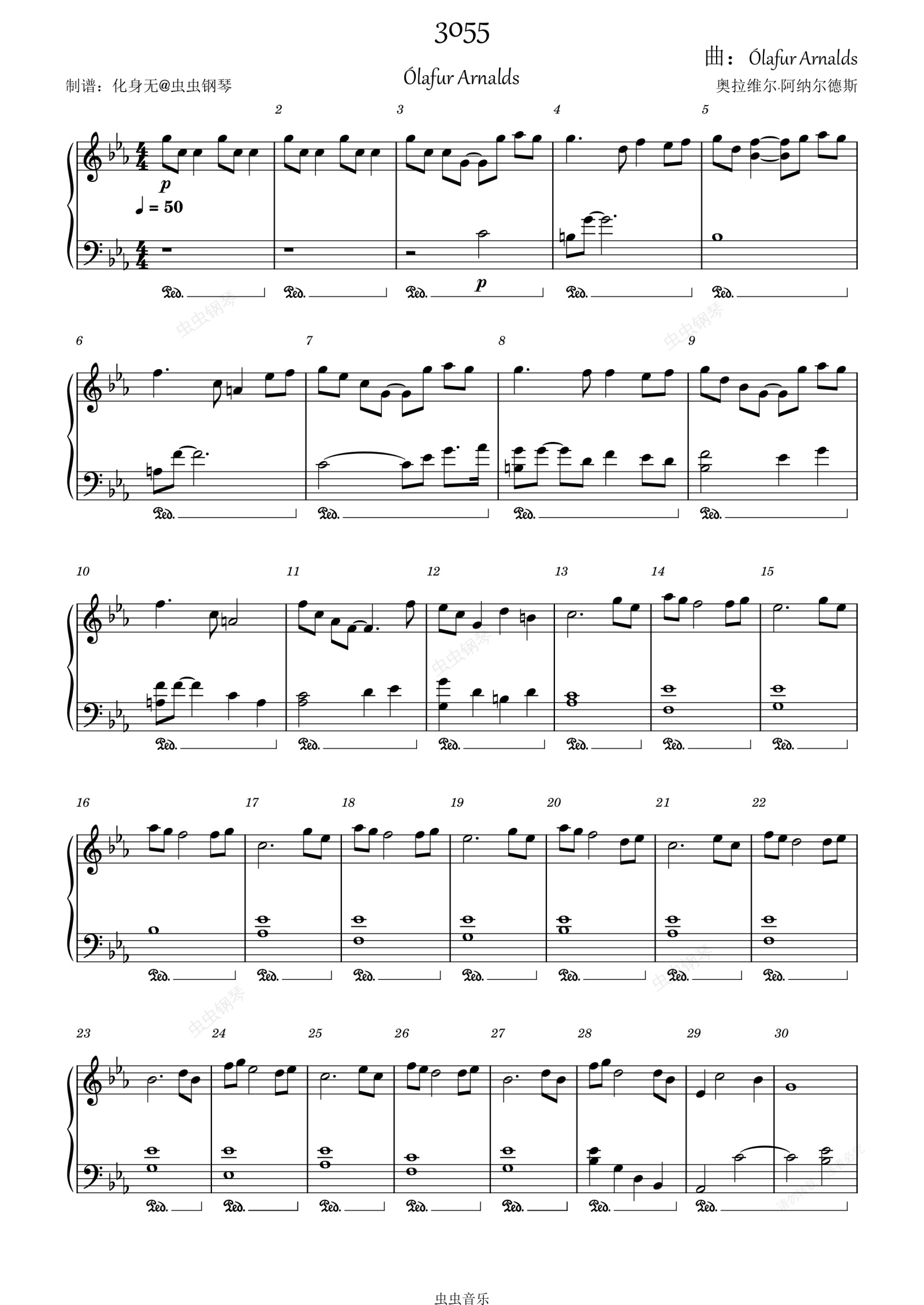 钢琴谱:3055 Ólafur Arnalds 化身无编配 原调独奏版