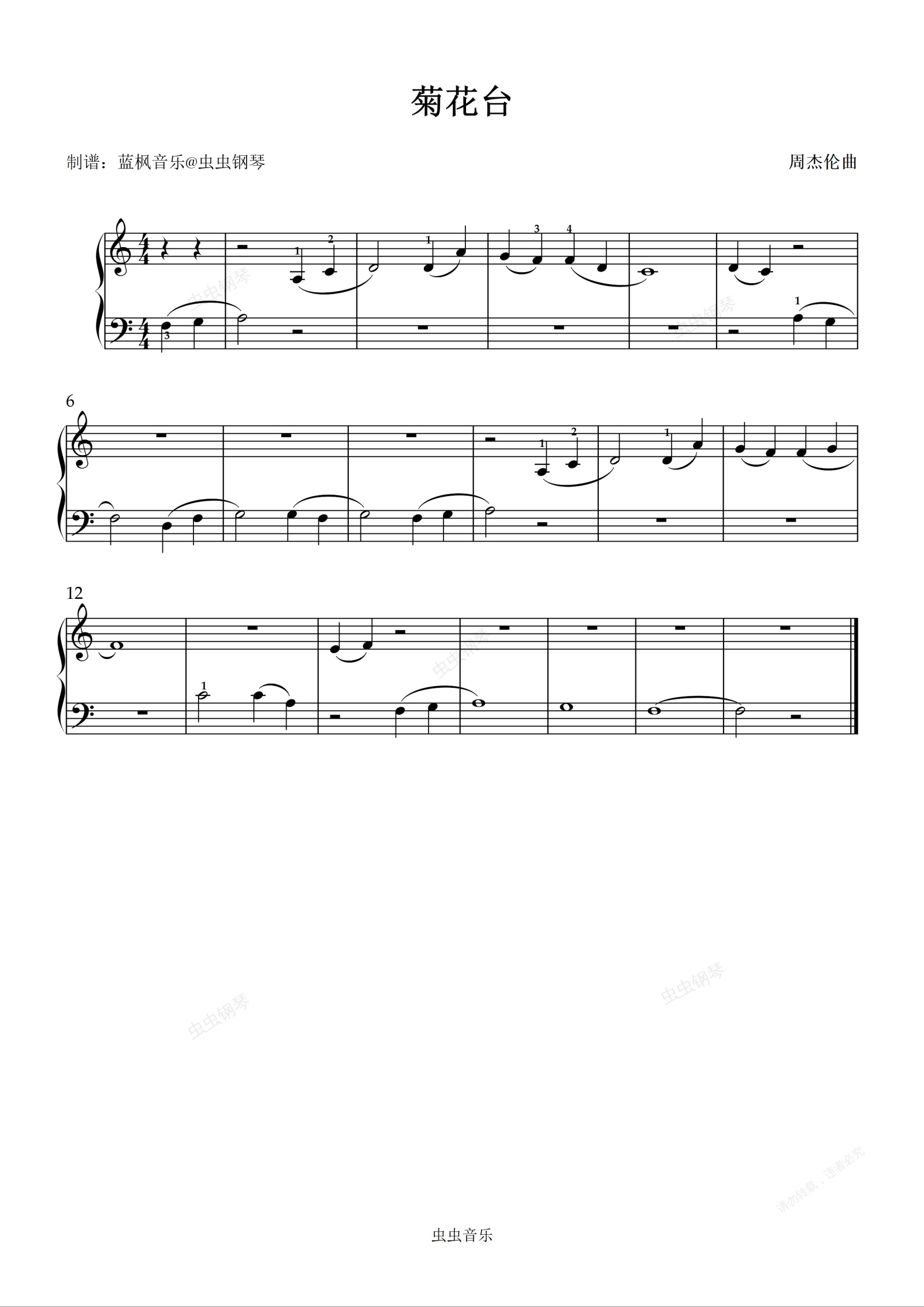 钢琴谱:1-12. 菊花台