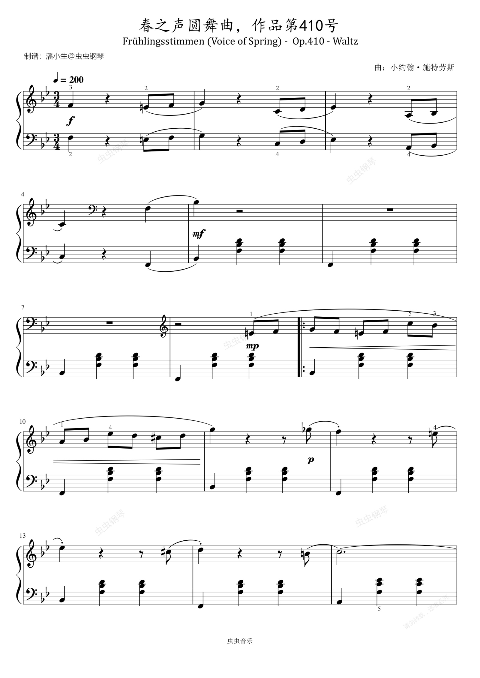 钢琴谱:小约翰·施特劳斯 春之声圆舞曲,作品第410号 原版带指法(Frühlingsstimmen Walzer,op.410)