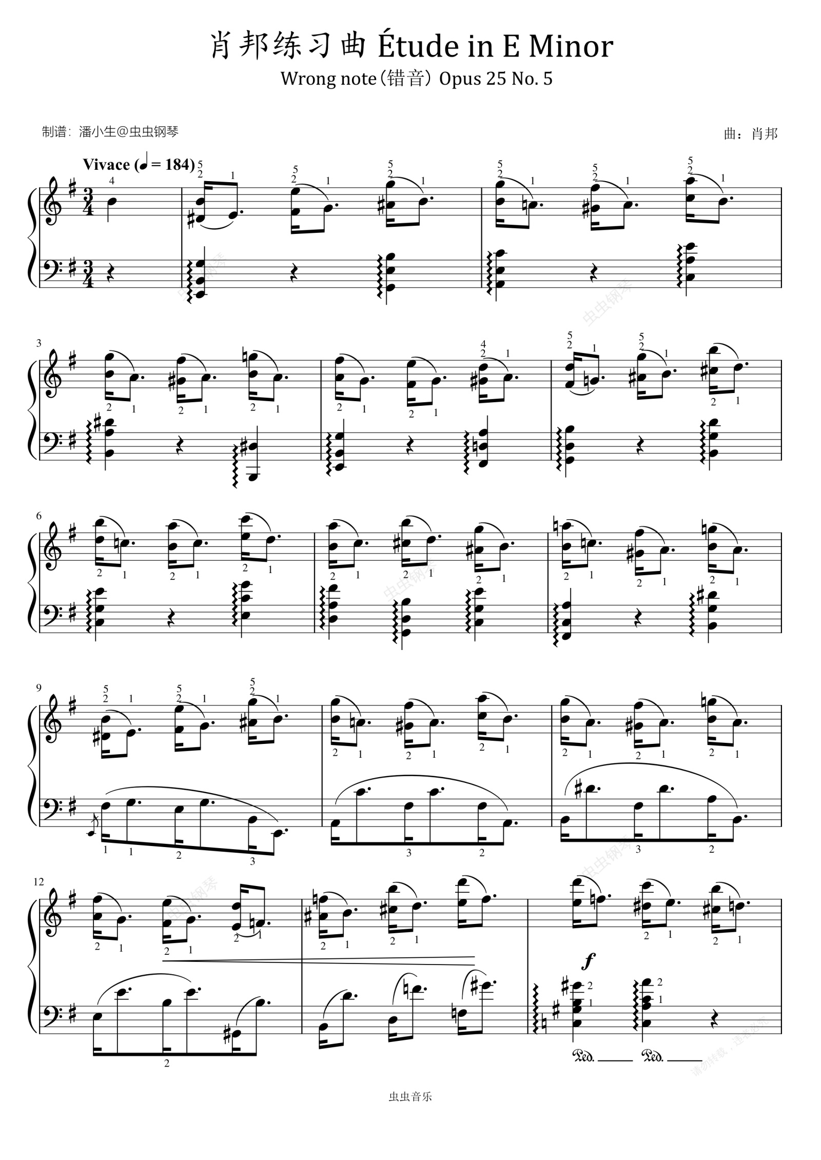 钢琴谱:肖邦 e小调练习曲 原版带指法 Wrong note(错音) Op.25 No. 5