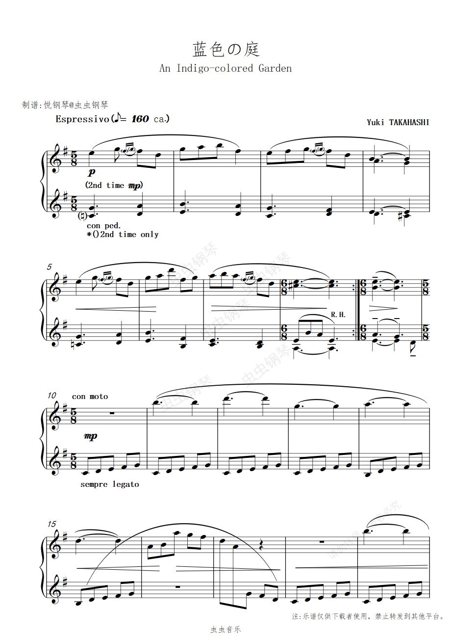 钢琴谱:蓝色の庭//An Indigo-colored Garden【唯美】