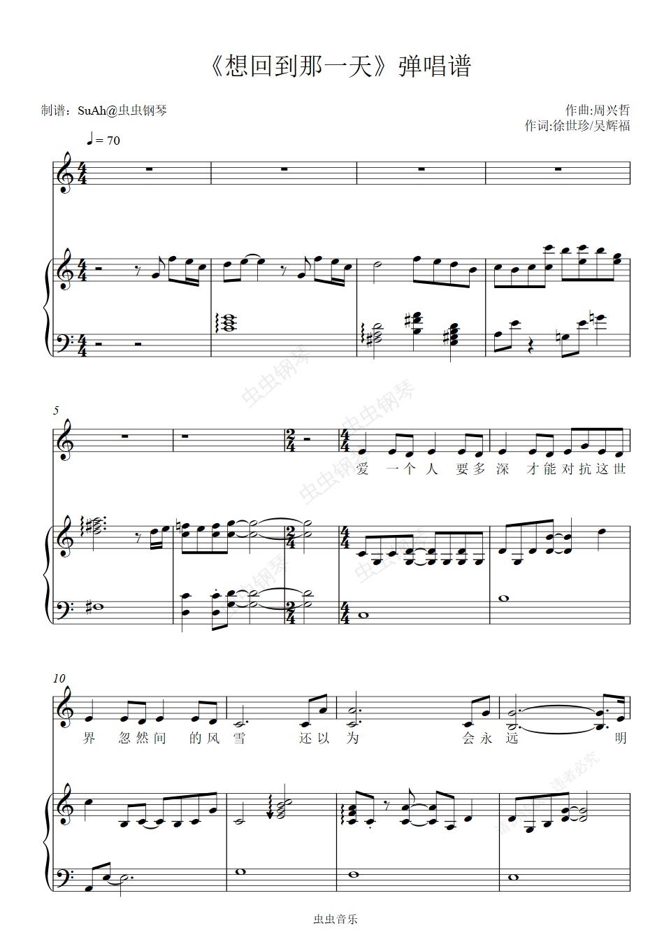 钢琴谱:想回到那一天-周兴哲 原调弹唱附词