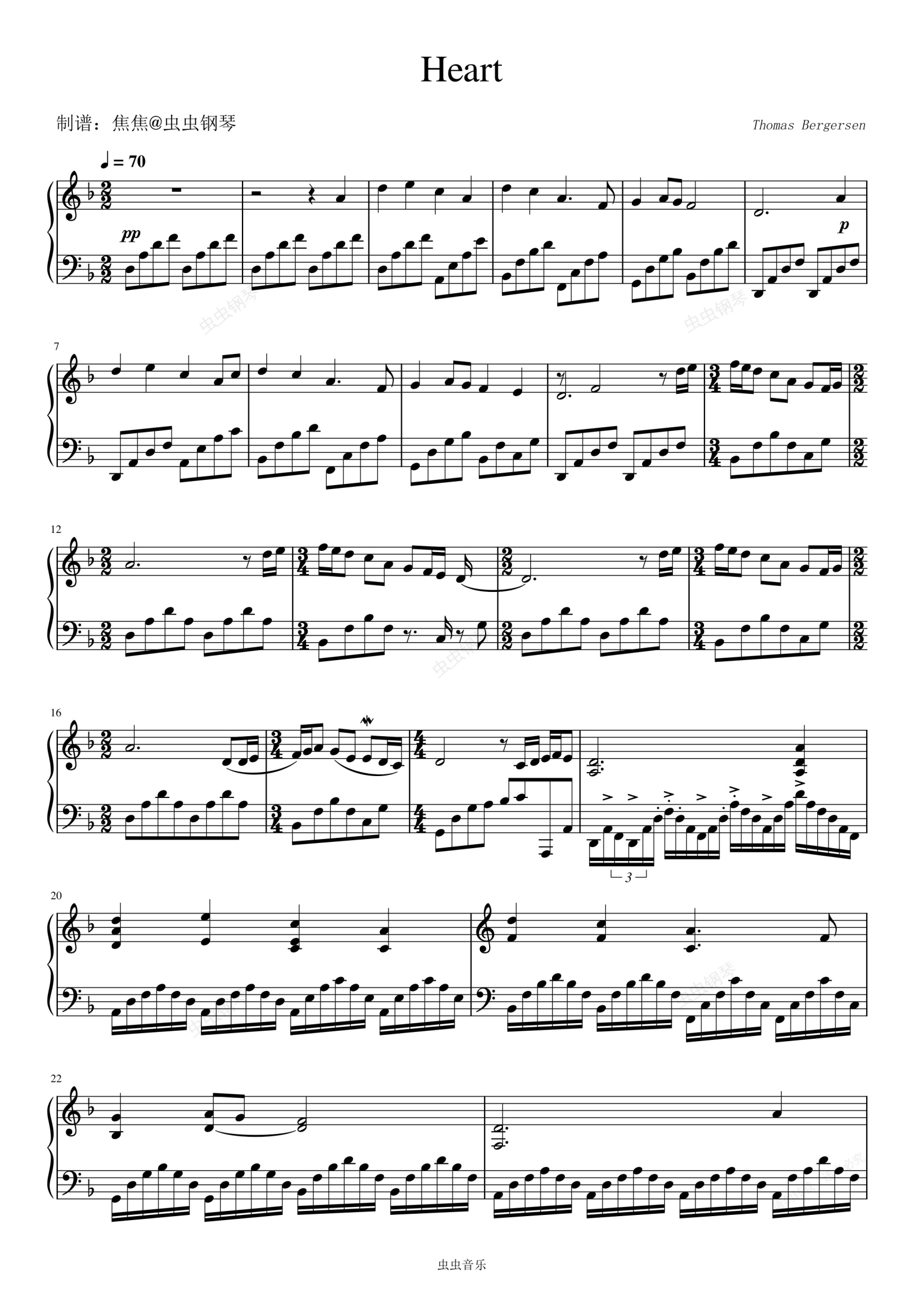 钢琴谱:Heart - Two Steps From Hell /Thomas Bergersen