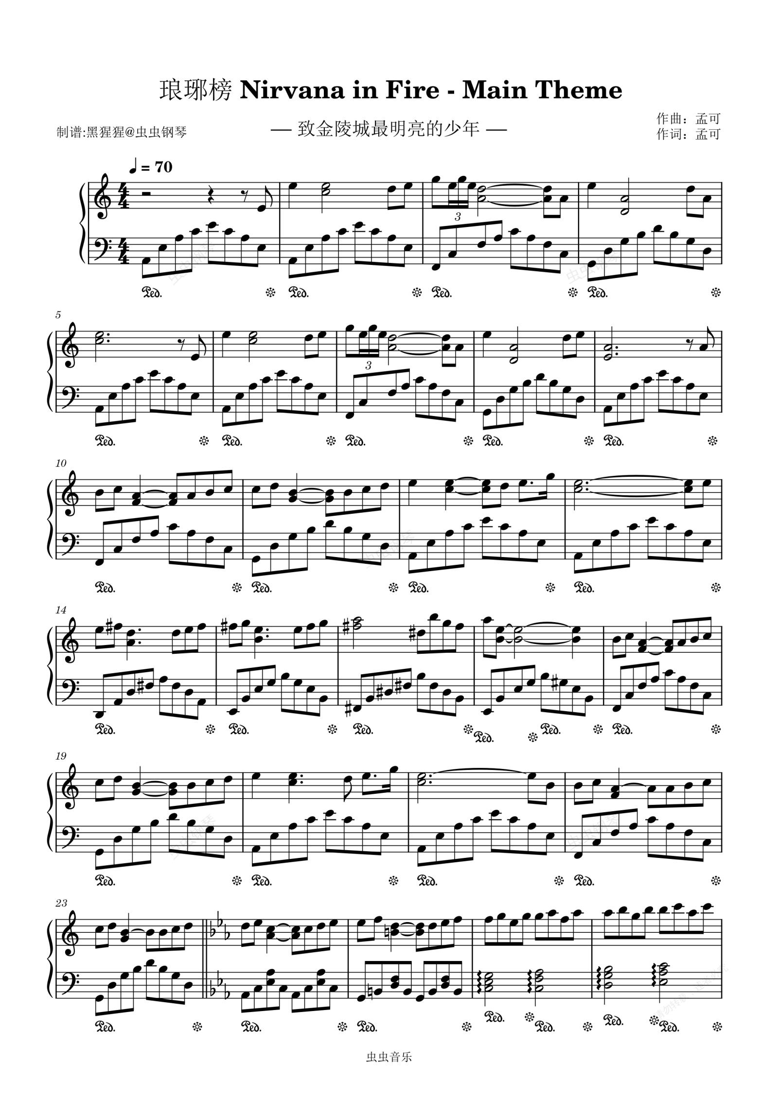 钢琴谱:孟可-C调 《琅琊榜 Nirvana in Fire 》
