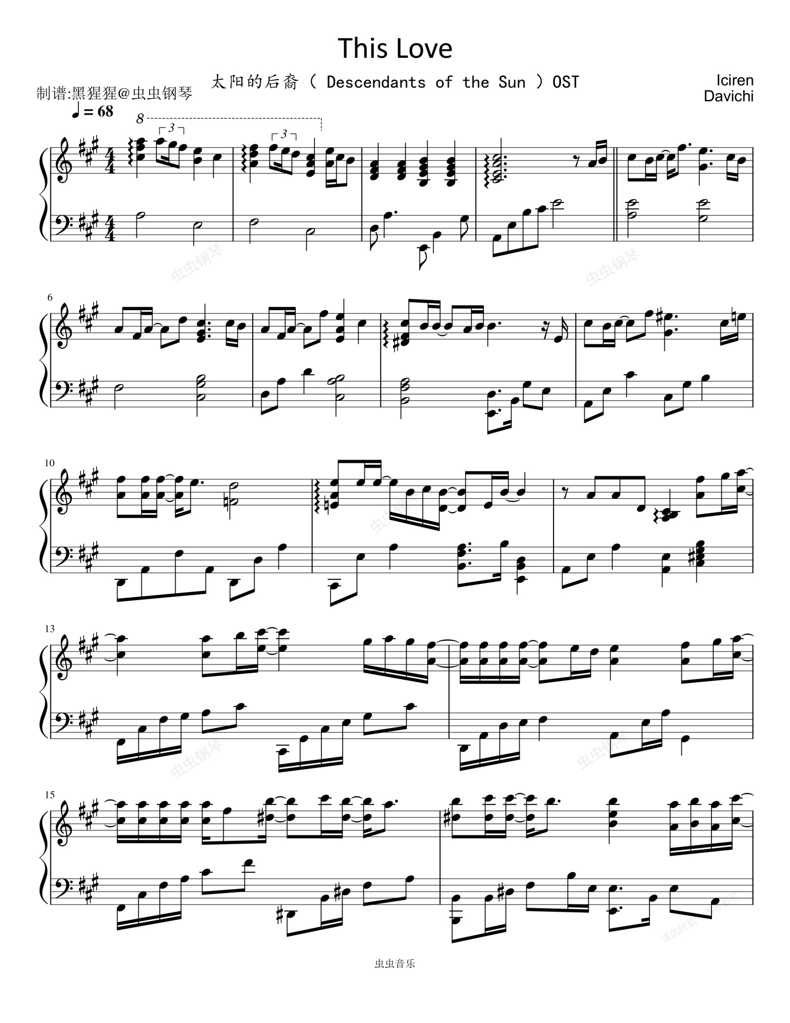 钢琴谱:Davichi-A调 《This Love 太阳的后裔》