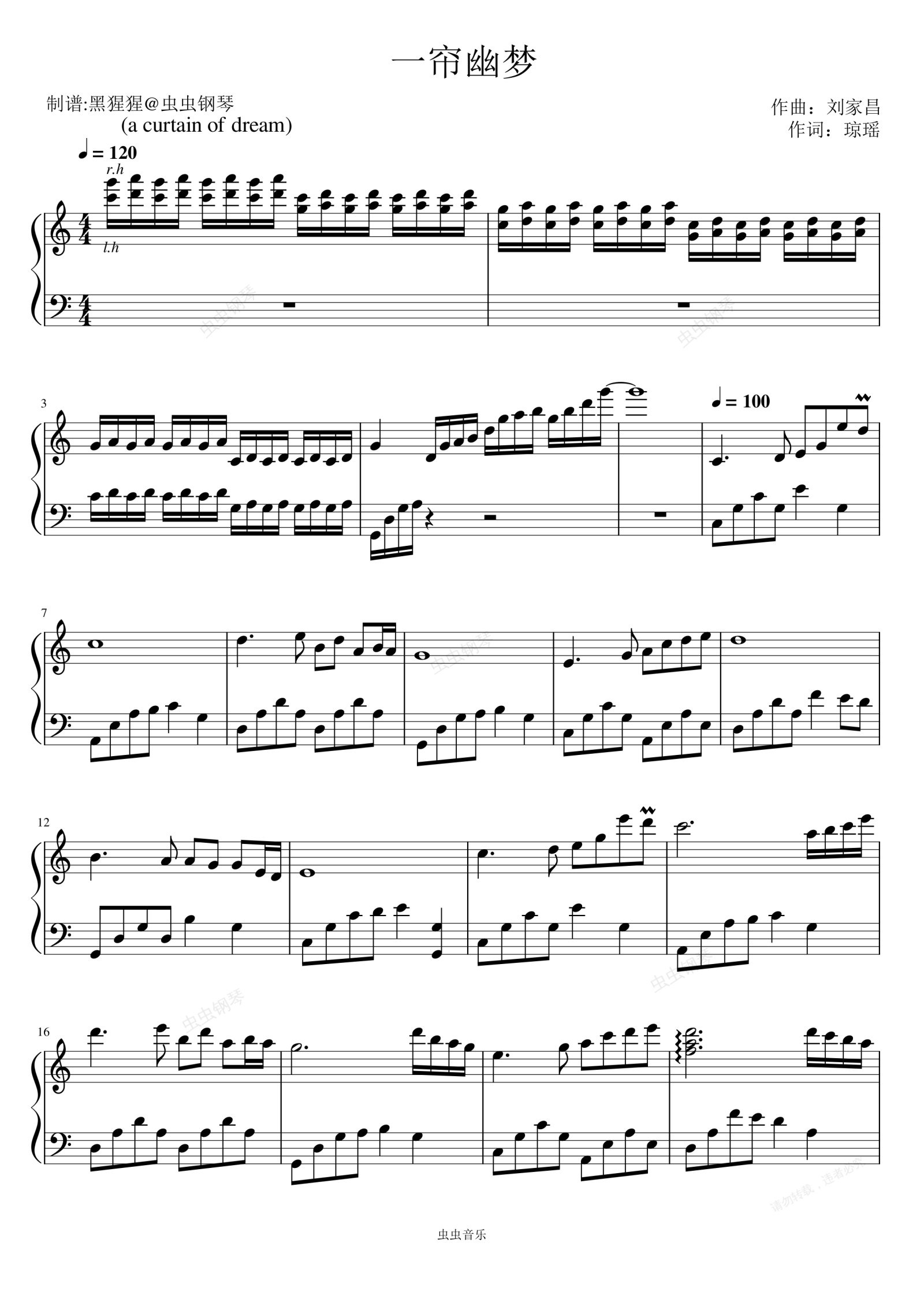 钢琴谱:萧孋珠-C调 《一帘幽梦》