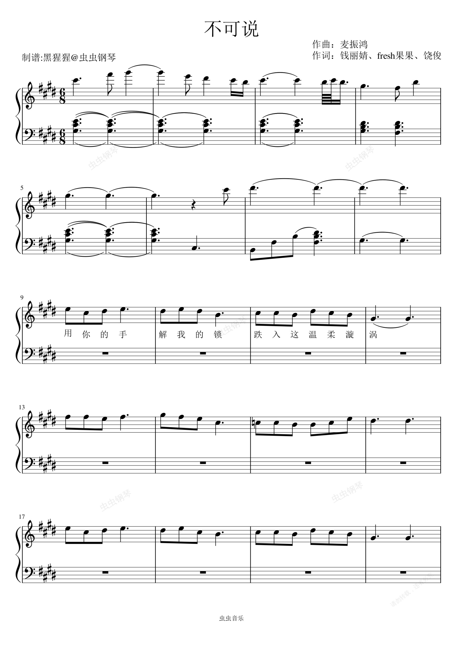 钢琴谱:霍建华/赵丽颖-E调 《不可说 《花千骨》片尾曲》