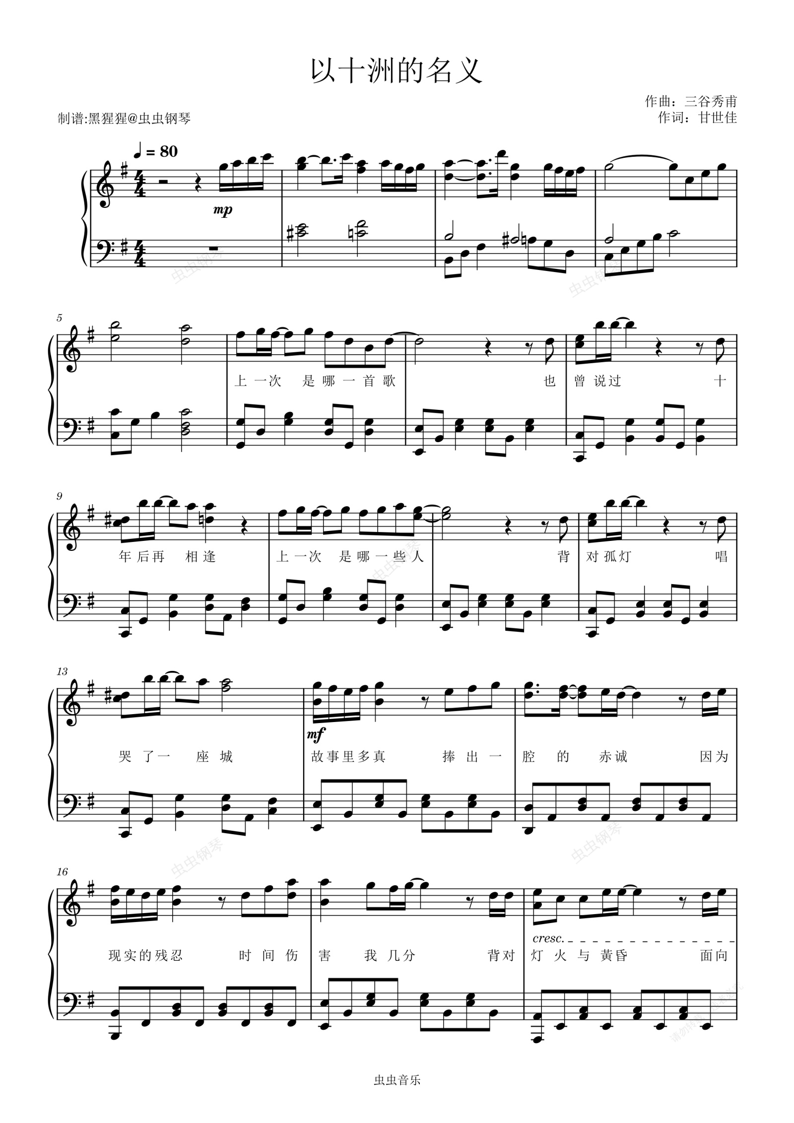 钢琴谱:SNH48-G调 《以十洲的名义》